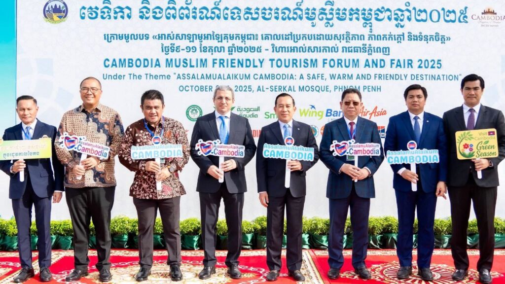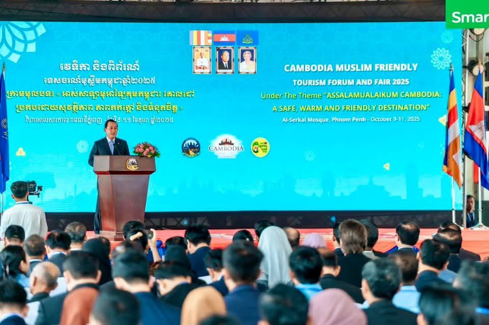 ឯកឧត្តម ហួត ហាក់ រដ្ឋមន្ត្រីក្រសួងទេសចរណ៍ បានអញ្ជើញជាអធិបតីក្នុងពិធីបើក « វេទិកា និងពិព័រណ៍ទេសចរណ៍មូស្លីមកម្ពុជាឆ្នាំ២០២៥ ក្រោមមូលបទ៖ អាស់សាឡាមូអាឡៃគុមកម្ពុជា៖ គោលដៅទេសចរណ៍ប្រកបដោយភាពកក់ក្ដៅ សុវត្ថិភាព និងទំនុកចិត្ត» នាព្រះវិហារអាល់សារកាល់ (វិហារឥស្លាមបឹងកក់) ថ្ងៃទី៩ ខែតុលា ឆ្នាំ២០២៥។