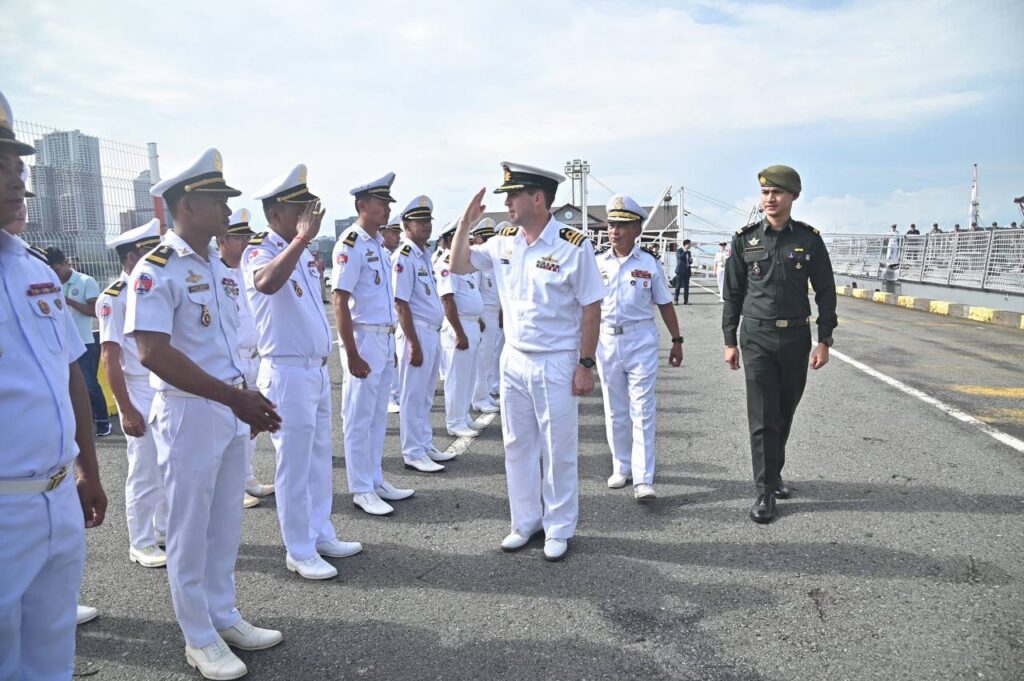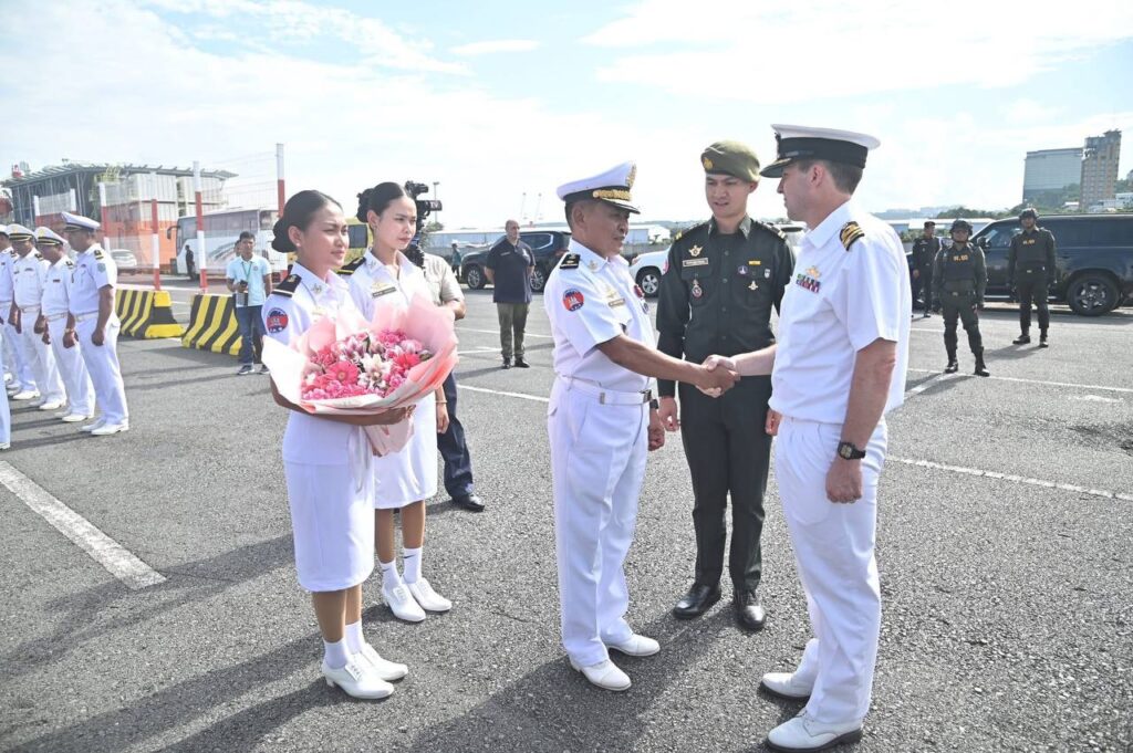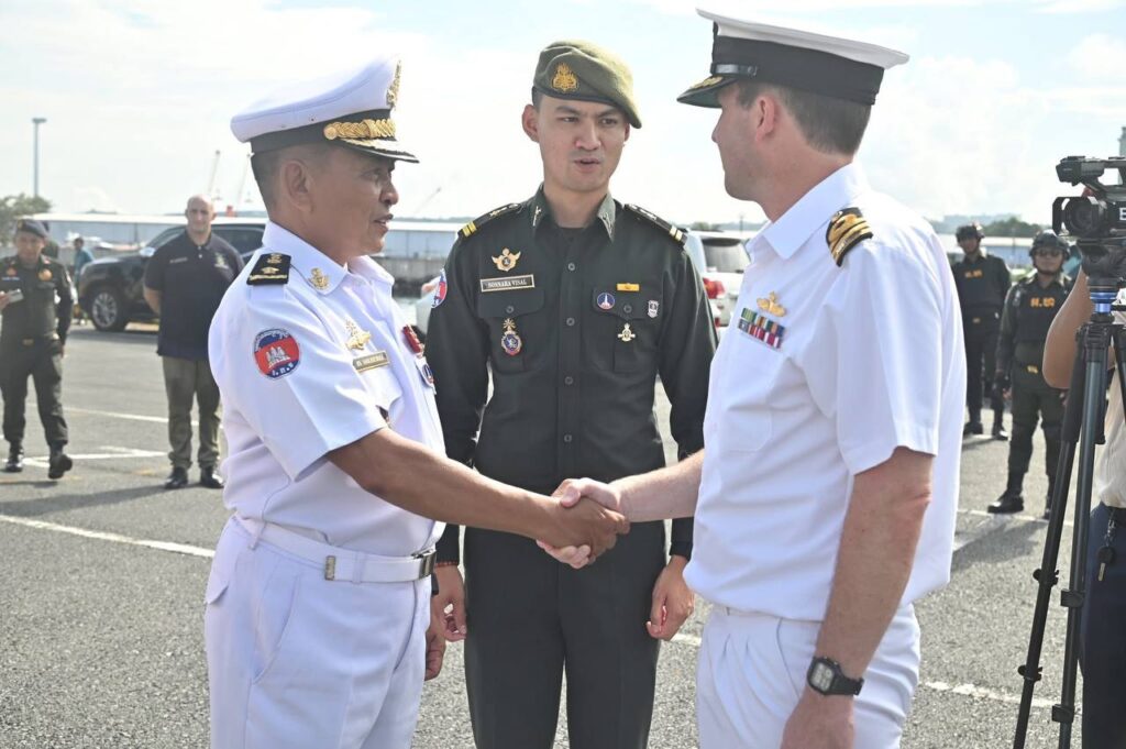 លោកឧត្តមនាវីត្រី អ៉ិន សុខេមរ៉ា នាយសេនាធិការរង មូលដ្ឋានសមុទ្ររាម និងនាយនាវីជាច្រើនរូប អញ្ជើញទៅទទួលស្វាគមន៍នាវាកងទ័ពជើងទឹកអូស្ត្រាលី ចំនួន១គ្រឿង ឈ្មោះ នាវាHMAS Ballarat -FFH155 (Anzac Class FFH) ដឹកនាំដោយវរនាវីទោ Dean Uren មេបញ្ជាការនាវា នៅកំពង់ផែស្វយ័តក្រុងព្រះសីហនុ។