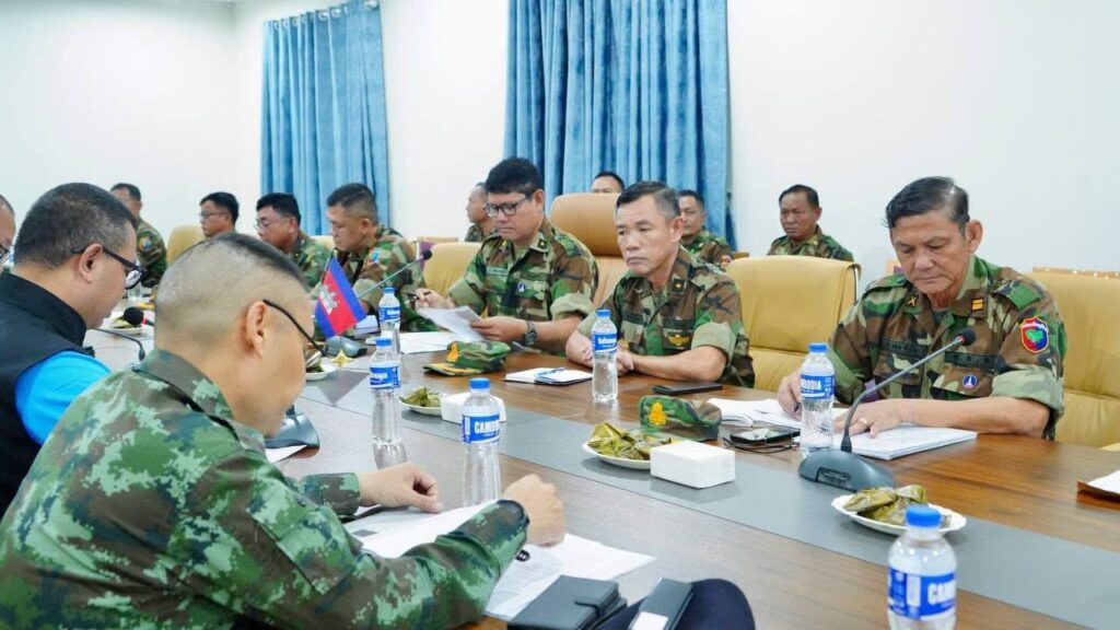 ឧត្តរមានជ័យ៖ ក្រសួងការពារជាតិ នៃព្រះរាជាណាចក្រកម្ពុជា បានឱ្យដឹងថា តបតាមការអញ្ជើញរបស់ប្រធានក្រុមលេខាធិការ យោធភូមិភាគទី៤ កម្ពុជា នៅព្រឹកថ្ងៃទី១០ ខែតុលា ឆ្នាំ២០២៥នេះ ក្រុមលេខានៃគណៈកម្មាធិការព្រំដែនថ្នាក់យោធភូមិភាគ កម្ពុជា-ថៃ (RBC) រវាងយោធភូមិភាគទី៤ ភាគីកម្ពុជា និងកងទ័ពភូមិភាគទី២ ភាគីថៃ បានជួបប្រជុំគ្នា នៅសាលប្រជុំក្រុមទំនាក់ទំនងកម្ពុជា-ថៃ ច្រកអន្តរជាតិអូរស្មាច់ ខេត្តឧត្តរមានជ័យ។