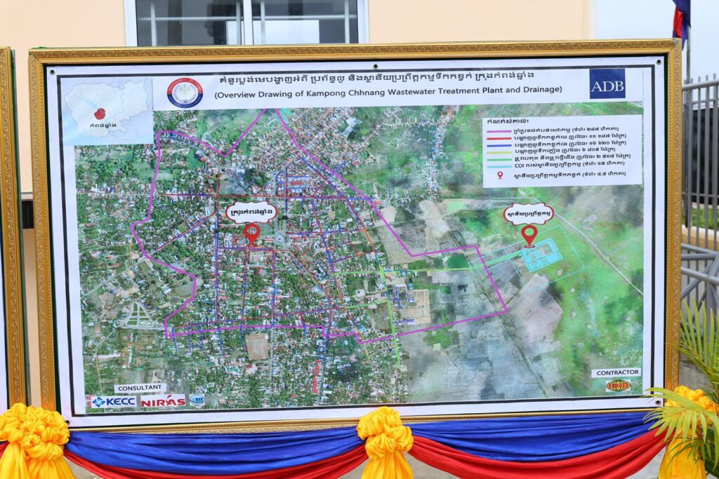 គម្រោងនេះគ្របដណ្ដប់លើផ្ទៃដីសរុបចំនួន ២៤៧ហិកតា ស្ថិតនៅក្នុងសង្កាត់ចំនួន៤ នៃក្រុង កំពង់ឆ្នាំង រួមមាន សង្កាត់ផ្សារឆ្នាំង សង្កាត់កំពង់ឆ្នាំង សង្កាត់ប្អៀរ និងសង្កាត់ខ្សាម ដែលមានផ្ទៃដីសម្រាប់សាងសង់ស្ថានីយប្រព្រឹត្តកម្មទឹកកខ្វក់ ទំហំ១៥ហិកតា ប៉ុន្តែបច្ចុប្បន្ននេះដីប្រើប្រាស់សម្រាប់ការសាងសង់អស់ ៤,៥ហិកតា។ ប្រព័ន្ធប្រព្រឹត្តកម្មទឹកកខ្វក់ដែលបានស្ថាបនារួច និងត្រៀមដាក់ឱ្យប្រើប្រាស់នាពេលនេះ មានសមត្ថភាពចម្រុះទឹកកខ្វក់បានចំនួន ៥ ៤០០ម៉ែត្រគូប ក្នុងមួយថ្ងៃ ហើយបានតភា្ជប់បណ្ដាញទឹកកខ្វក់តាមផ្ទះបងប្អូនប្រជាពលរដ្ឋ និងអគារការិយាល័យផ្សេងៗចំនួន ៥០០ទីតាំង និងសាងសង់បង្គន់អនាម័យដល់គ្រួសារក្រីក្រចំនួន ១ ២៩៣ទីតាំង និងបណ្ដាញលូមេ-លូរងតាមលំហូរធម្មជាតិ ដែលទាំងនេះនឹងក្លាយជាសមិទ្ធផលមួយរួមចំណែកលើកកម្ពស់សុខុមាលភាព និងអនាម័យបរិស្ថានសម្រាប់បងប្អូនប្រជាពលរដ្ឋរស់នៅក្នុងក្រុងកំពង់ឆ្នាំង។