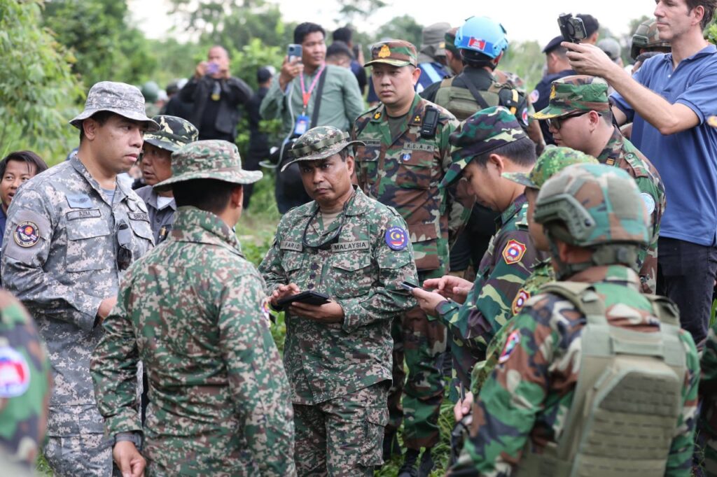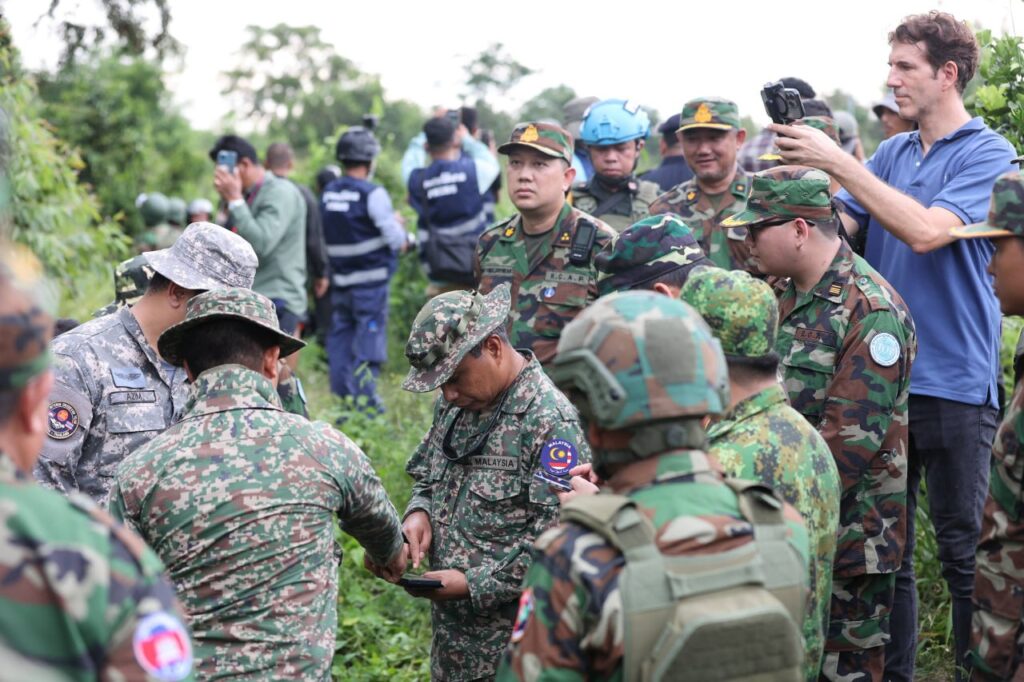 បន្ទាយមានជ័យ ៖ ក្រុមអ្នកសង្កេតការណ៍អន្តរកាល (IOT) ដឹកនាំដោយប្រទេសម៉ាឡេស៊ី អញ្ជើញចុះពិនិត្យទីតាំងជាក់ស្តែង នៅភូមិព្រៃចាន់ ឃុំអូរបីជាន់ ស្រុកអូរជ្រៅ ខេត្តបន្ទាយមានជ័យ ជាថ្មី កន្លែងដែលកងកម្លាំងថៃ និងគ្រឿងចក្រ បានបំពានអធិបតេយ្យភាពកម្ពុជា នារសៀលថ្ងៃទី១០ ខែតុលា ឆ្នាំ២០២៥ ក្រោមការសម្របសម្រួលពីក្រសួងការពារជាតិ នៃព្រះរាជាណាចក្រកម្ពុជា។