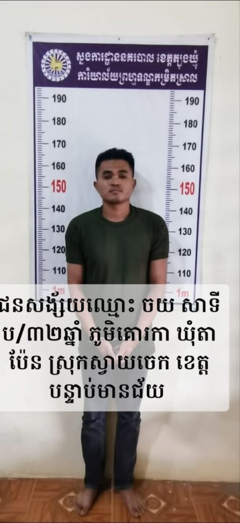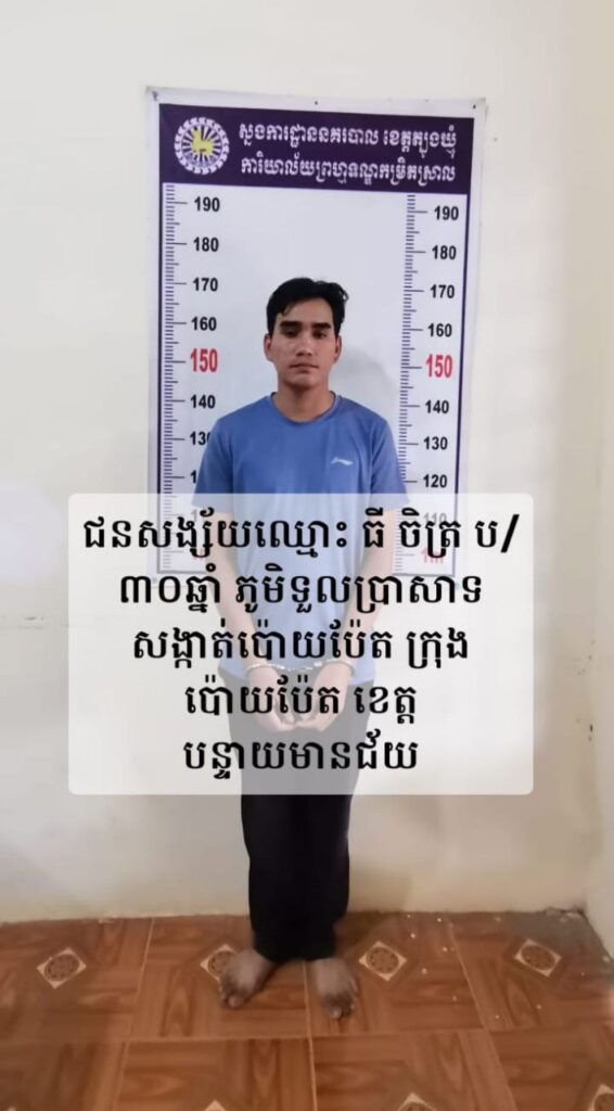 ២. ឈ្មោះ ធី ចិត្ត ភេទប្រុស អាយុ៣០ឆ្នាំ ជនជាតិខ្មែរ រស់នៅភូមិទួលប្រាសាទ សង្កាត់ប៉ោយប៉ែត ក្រុងប៉ោយប៉ែត ខេត្តន្ទាយមានជ័យ។