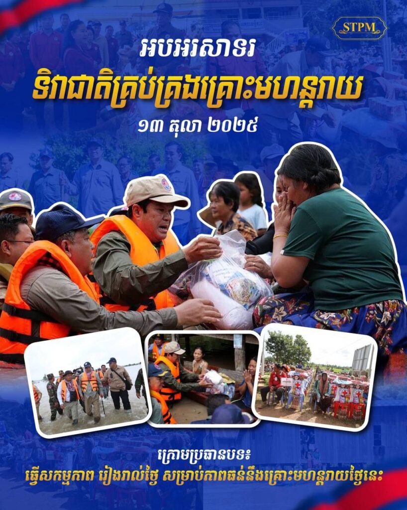 ក្នុងឱកាស “ទិវាជាតិគ្រប់គ្រងគ្រោះមហន្តរាយ» ថ្ងៃទី១៣ ខែតុលា ឆ្នាំ២០២៥ ក្រោមប្រធានបទ «ធ្វើសកម្មភាព រៀងរាល់ថ្ងៃ សម្រាប់ភាពធន់នឹងគ្រោះមហន្តរាយថ្ងៃនេះ» រួមជាមួយទិវាអាស៊ានគ្រប់គ្រងគ្រោះមហន្តរាយ និង ទិវាអន្តរជាតិកាត់បន្ថយគ្រោះមហន្តរាយ ថ្ងៃទី១៣ ខែតុលា ឆ្នាំ២០២៥។