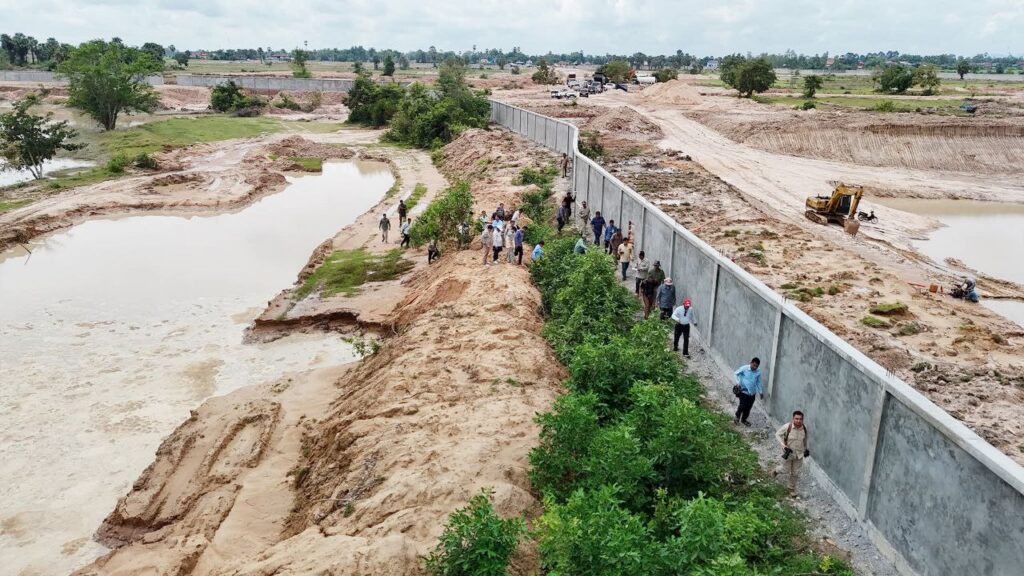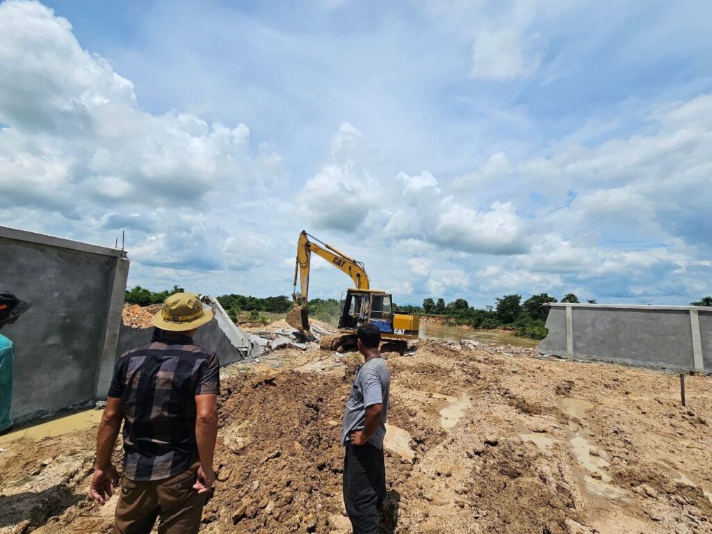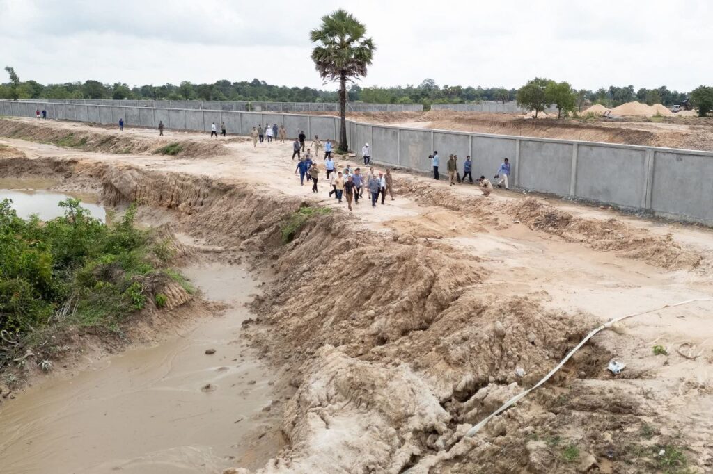 ខេត្តតាកែវ ៖ នាព្រឹកថ្ងៃទី១៣ ខែតុលា ឆ្នាំ២០២៥នេះ ឯកឧត្តម ថោ ជេដ្ឋា រដ្ឋមន្ត្រីក្រសួងធនធានទឹក និងឧតុនិយម អមដំណើរដោយឯកឧត្តមរដ្ឋលេខាធិការប្រចាំការ ឯកឧត្តមជាថ្នាក់ដឹកនាំ មន្ត្រីបច្ចេកទេសក្រសួង និងមន្ទីរធនធានទឹក និងឧតុនិយមខេត្តតាកែវ និងដោយមានការចូលរួមពីឯកឧត្តម វ៉ី សំណាង អភិបាលនៃគណៈអភិបាលខេត្តតាកែវ ព្រមទាំងមន្ទីរអង្គភាពពាក់ព័ន្ធ និងអាជ្ញាធរមូលដ្ឋានគ្រប់លំដាប់ថ្នាក់ បានអញ្ជើញចុះពិនិត្យជាក់ស្តែងផលប៉ះពាល់នៅទីតាំងសាងសង់របងថ្មជាប់មាត់ស្ទឹងស្លាគូប្រវែង ១១៩ម៉ែត្រ ដែលបានរក្សាទុកចំណីមាត់ស្ទឹងខ្លីខុសពីច្បាប់កំណត់ ស្ថិតក្នុងភូមិត្រពាំងពោធិ៍ ឃុំជាងទង ស្រុកត្រាំកក់ ខេត្តតាកែវ។