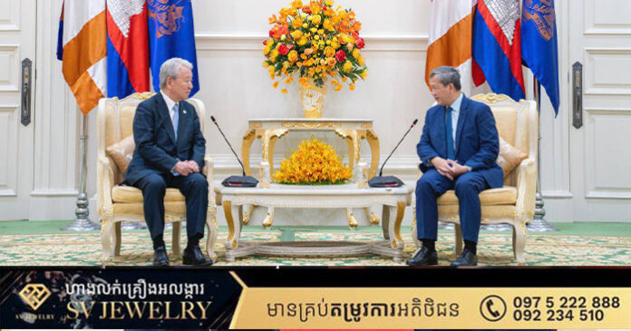 ក្នុងឱកាសនៃជំនួប, ឯកឧត្តមបណ្ឌិត Tanaka Akihiko បានកត់សម្គាល់ការរីកចម្រើនយ៉ាងច្រើនរបស់កម្ពុជា ព្រោះឯកឧត្តមបណ្ឌិតធ្លាប់បានបំពេញទស្សនកិច្ចការងារនៅកម្ពុជា កាលពី១០ឆ្នាំមុន ។ ឯកឧត្តមបណ្ឌិតបានគូសបញ្ជាក់អំពីការបន្តគាំទ្ររបស់ទីភ្នាក់ងារ JICA ចំពោះកិច្ចសហប្រតិបត្តិការជាច្រើន មានជាអាទិ៍៖ ការបោសសម្អាតមីន, និងការពង្រីកកំពង់ផែស្វយ័តក្រុងព្រះសីហនុ។ ឯកឧត្តមបណ្ឌិតបានវាយតម្លៃខ្ពស់ចំពោះអង្គភាព CMAC របស់កម្ពុជា ដែលបានផ្តល់វគ្គបណ្តុះបណ្តាលបោសសម្អាតមីនមនុស្សធម៌ ដល់អង្គភាពផ្តល់សេវាកម្មរដ្ឋក្នុងគ្រាអាសន្នរបស់ប្រទេសអ៊ុយក្រែន។ ឯកឧត្តមបណ្ឌិតបានថ្លែងបន្ថែមអំពីការផ្តល់ឥណទានសម្បទានរបស់រដ្ឋាភិបាលជប៉ុន ក្រោមជំនួយអភិវឌ្ឍន៍ផ្លូវការ (ODA) ដើម្បីពង្រីកប្រព័ន្ធផ្គត់ផ្គង់ទឹកស្អាតនិរោធ និងគម្រោងពង្រីកប្រព័ន្ធបញ្ជូន និងចែកចាយអគ្គិសនីក្នុងរាជធានីភ្នំពេញ (ដំណាក់កាលទី៣) ដោយគម្រោងទាំងនេះនឹងត្រូវចុះហត្ថលេខានារសៀលថ្ងៃនេះ។