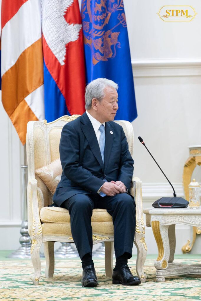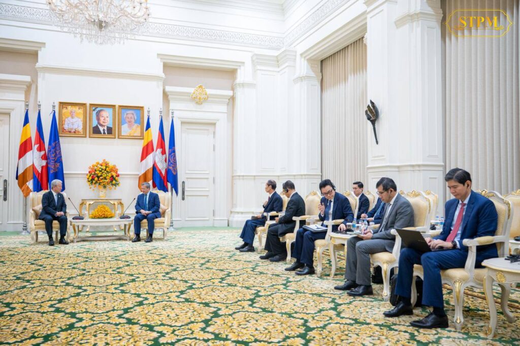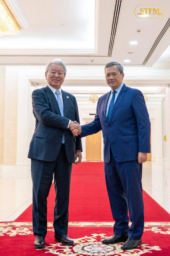 ភ្នំពេញ ៖ នាព្រឹកថ្ងៃទី១៣ ខែតុលា ឆ្នាំ២០២៥ នៅវិមានសន្តិភាព, សម្តេចមហាបវរធិបតី ហ៊ុន ម៉ាណែត នាយករដ្ឋមន្ត្រីនៃព្រះរាជាណាចក្រកម្ពុជា បានអនុញ្ញាតឱ្យ ឯកឧត្តមបណ្ឌិត Tanaka Akihiko ប្រធានទីភ្នាក់ងារសហប្រតិបត្តិការអន្តរជាតិជប៉ុន (JICA) ចូលជួបសម្តែងការគួរសម និងពិភាក្សាការងារ។