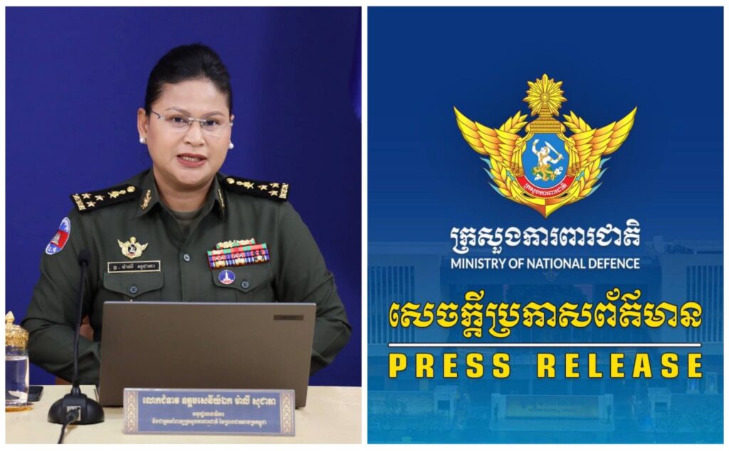 ភ្នំពេញ ៖ ក្រសួងការពារជាតិ នៃព្រះរាជាណាចក្រកម្ពុជា នៅថ្ងៃពុធ ៨រោច ខែអស្សុជ ឆ្នាំម្សាញ់ សប្តស័ក ព.ស ២៥៦៩ ត្រូវនឹងថ្ងៃទី១៥ ខែតុលា ឆ្នាំ២០២៥ សូមជម្រាបជូនដល់សាធារណជន អ្នកសារព័ត៌មានជាតិ និងអន្តរជាតិមេត្តាជ្រាបថា៖ កិច្ចប្រជុំគណៈកម្មាធិការព្រំដែនថ្នាក់យោធភូមិភាគកម្ពុជា-ថៃ (RBC) រវាងយោធភូមិភាគទី៤ កម្ពុជា និងកងទ័ពភូមិភាគទី២ ថៃ ដែលគ្រោងធ្វើនៅថ្ងៃទី១៥ ដល់ថ្ងៃទី១៧ ខែតុលា ឆ្នាំ២០២៥ ត្រូវបានលើកទៅពេលក្រោយ តាមការស្នើសុំរបស់ភាគីថៃ និងជំនួសវិញដោយជំនួបជាមួយក្រុមលេខាធិការដ្ឋាន នៃគណៈកម្មាធិការព្រំដែនថ្នាក់យោធភូមិភាគ កម្ពុជា-ថៃ (RBC) វិញ នៅថ្ងៃទី១៧ ខែតុលា ឆ្នាំ២០២៥។