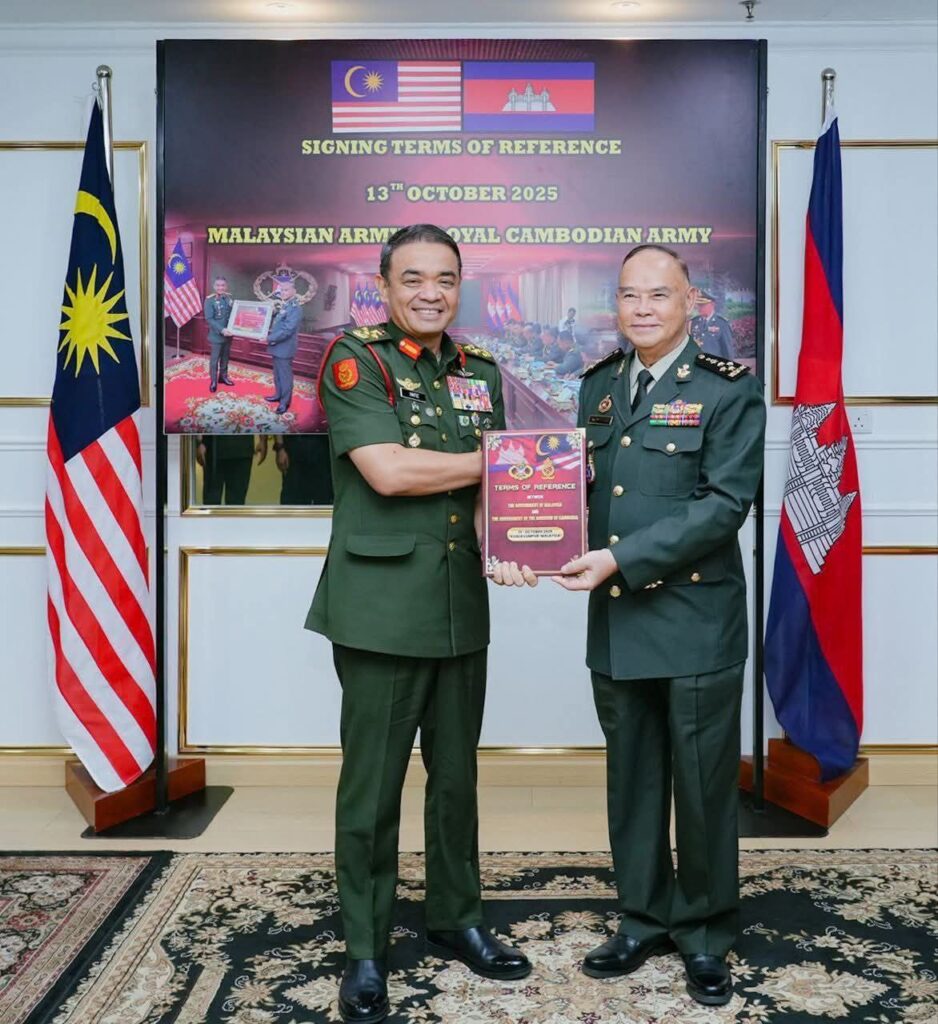 ភ្នំពេញ ៖ ដោយមានការអនុញ្ញាតពី ក្រសួងការពារជាតិ និង អគ្គបញ្ជាការ ឯកឧត្តម នាយឧត្តមសេនីយ៍ ម៉ៅ សុផាន់ អគ្គមេបញ្ជាការរង នៃកងយោធពលខេមរភូមិន្ទ មេបញ្ជាការកងទ័ពជើងគោក បានអញ្ជើញដឹកនាំប្រតិភូទៅបំពេញទស្សនកិច្ចផ្លូវការនៅប្រទេសម៉ាឡេស៊ី ចាប់ពីថ្ងៃទី១៣ ដល់ថ្ងៃទី១៦ ខែតុលា ឆ្នាំ២០២៥។