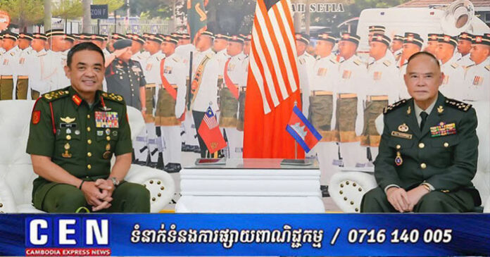 ក្នុងជំនួបទ្វេភាគីរវាង ឯកឧត្តម នាយឧត្តមសេនីយ៍ ម៉ៅ សុផាន់ និង ឯកឧត្តម នាយឧត្តមសេនីយ៍ TAN SRI DATO’ SERI MUHAMMAD HAFIZUDDEAIN BIN JANTAN សាមភាគីបានសម្រេច ចុះហត្ថលេខារួមគ្នាលើឯកសារ លក្ខខណ្ឌស្តីពីកិច្ច សហប្រតិបត្តិការរវាងកងទ័ពជើងគោក នៃកងយោធពលខេមរភូមិន្ទ និងកងទ័ពជើងគោក ម៉ាឡេស៊ី (TOR) ក្នុងគោលបំណងដើម្បីពង្រឹង និងពង្រីកចំណងមិត្តភាពឱ្យកាន់តែជិតស្និទ្ធ, យូរអង្វែង និងប្រកបដោយទំនុកចិត្ត ដើម្បីចូលរួមចំណែកថែរក្សាសន្តិភាពនៅក្នុងតំបន់ ដោយផ្តោតលើការផ្លាស់ប្តូរទៅវិញទៅមក ការហ្វឹកហ្វឺន-បណ្តុះបណ្តាល ការធ្វើលំហាត់រួមគ្នា និងវិស័យផ្សេងៗទៀតដែលផ្តល់ប្រយោជន៍ឲ្យកងទ័ពជើងគោកទាំងពីរ។
