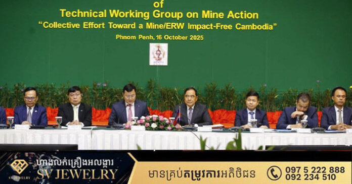 ភ្នំពេញ ៖ ថ្ងៃទី១៦ ខែតុលា ឆ្នាំ២០២៥ នៅសណ្ឋាគាររ៉េស៊ីដង់ សុខាភ្នំពេញ តាងនាមឱ្យ សម្តេចមហាបវរធិបតី ហ៊ុន ម៉ាណែត នាយករដ្ឋមន្រ្តីនៃព្រះរាជាណាចក្រកម្ពុជា និងជាប្រធានអាជ្ញាធរមីន ឯកឧត្តមបណ្ឌិត លី ធុជ ទេសរដ្ឋមន្រ្តី និងជាអនុប្រធានទី១ អាជ្ញាធរមីន បានដឹកនាំកិច្ចប្រជុំក្រុមការងារបច្ចេកទេសចម្រុះរាជរដ្ឋាភិបាល ដៃគូអភិវឌ្ឍវិស័យមីន (TWG-MA) ក្រោមប្រធានបទ “កិច្ចប្រឹងប្រែងរួមគ្នាឆ្ពោះទៅកម្ពុជាមួយគ្មានផលប៉ះពាល់ពីមីននិងសំណល់ជាតិផ្ទុះពីសង្រ្គាម”។ កិច្ចប្រជុំនេះ មានការចូលរួមពី ឯកឧត្តម ឌិត ទីណា រដ្ឋមន្រ្តីក្រសួងកសិកម្ម រុក្ខាប្រមាញ់ និងនេសាទ ឯកឧត្តម Enrico Gaveglia អ្នកតំណាងកម្មវិធីអភិវឌ្ឍន៍អង្គការសហប្រជាជាតិ (UNDP) ប្រចាំកម្ពុជា តំណាងក្រសួង-ស្ថាប័នពាក់ព័ន្ធ ប្រទេសម្ចាស់ជំនួយ ដៃគូអភិវឌ្ឍន៍ ប្រតិបត្តិករសកម្មភាពមីន វិស័យឯកជន អង្គការសង្គមស៊ីវិល និងភាគីពាក់ព័ន្ធដទៃទៀត។