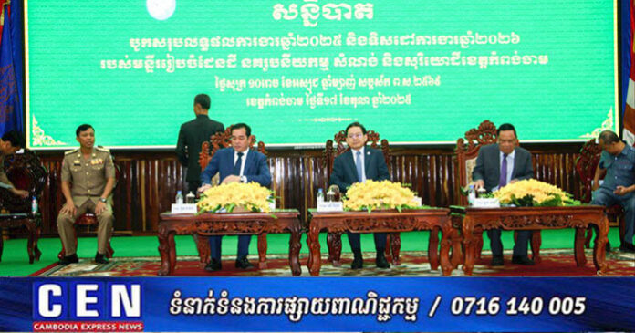 ខេត្តកំពង់ចាម:”ត្រូវពង្រឹងការគ្រប់គ្រងវិស័យសំណង់ដោយចាត់វិធានការតឹងរឹងក្នុងការទប់ស្កាត់ការសាងសង់រំលោភលើដីសាធារណៈរបស់រដ្ឋការសាងសង់គ្មានលិខិតអនុញ្ញាត ការសាងសង់ខុសលិខិតអនុញ្ញាតនិងការសាងសង់សំណង់មិនរៀបរយ ដើម្បីជៀសវាងការប៉ះពាល់ដល់សោភ័ណភាពសុវត្ថិភាពសណ្ដាប់ធ្នាប់សាធារណៈនិងបរិស្ថាន។”នេះជាប្រសាសន៍លើកឡើងពីសំណាក់ឯកឧត្តមអ៊ុន ចាន់ដាអភិបាលខេត្តថ្លែងក្នុងឱកាសបិទសន្និបាតបូកសរុបលទ្ធផលការងារឆ្នាំ ២០២៥និងទិសដៅការងារឆ្នាំ២០២៦ របស់មន្ទីររៀបចំដែនដីនគររូបនីយកម្មសំណង់និងសូរិយោដីខេត្ត ដោយធ្វើឡើងនៅសាលសន្និសីទសាលាខេត្តនាព្រឹកថ្ងៃទី១៧តុលា ឆ្នាំ២០២៥។ កម្មវិធីនេះធ្វើឡើងនៅក្រោមអធិបតីឯកឧត្តមម៉ៅ វិបុល អនុរដ្ឋលេខាធិការក្រសួងរៀបចំដែនដី ដោយមានការចូលរួមពីឯកឧត្តមខ្លូត ផន ប្រធានក្រុមប្រឹក្សាខេត្តអភិបាលស្រុក-ក្រុងទាំង១០លោកមេឃុំ-ចៅសង្កាត់ទូទាំងខេត្តកំពង់ចាម។