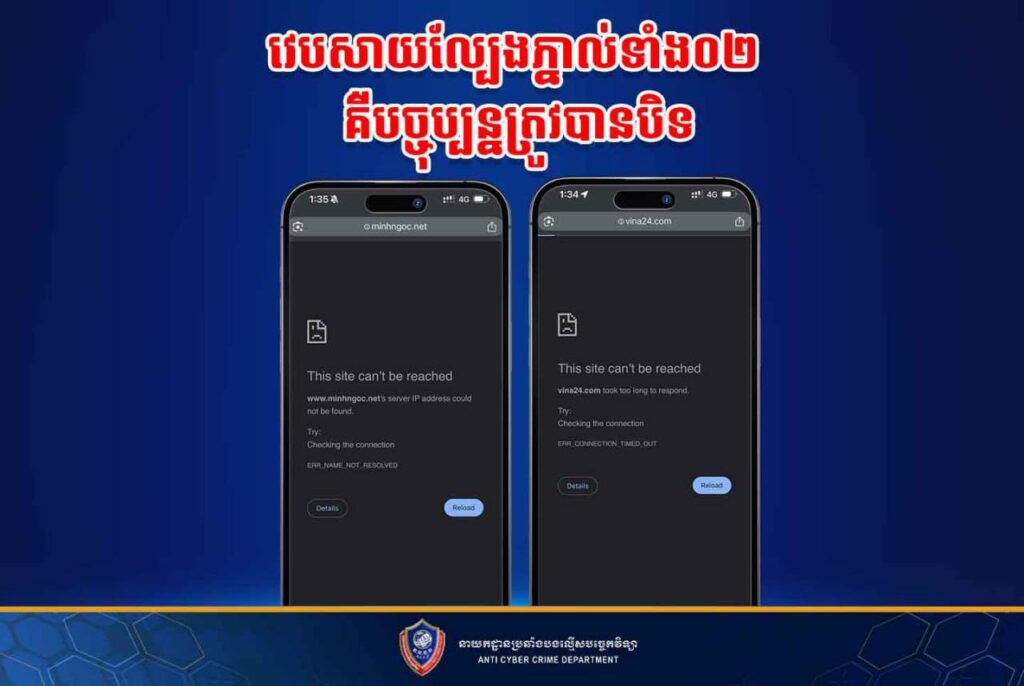 នាយកដ្ឋានបានធ្វើការស្រាវជ្រាវ ដោយពិនិត្យឃើញថា វេបសាយទាំង០២ គឺបច្ចុប្បន្នត្រូវបានបិទ។ គូសបញ្ជាក់ផងដែរថា កន្លងមក នាយកដ្ឋានប្រឆាំងបទល្មើសបច្ចេកវិទ្យា បានស្នើសុំគោលការណ៍ពី ឯកឧត្តមនាយឧត្តមសេនីយ៍ អគ្គស្នងការនគរបាលជាតិ និងសហការជាមួយក្រសួងប្រៃសណីយ៍ទូរគមនាគមន៍ ដើម្បីធ្វើការបិទវេបសាយល្បែងអនឡាញជាច្រើនដែលមានសកម្មភាពខុសច្បាប់។