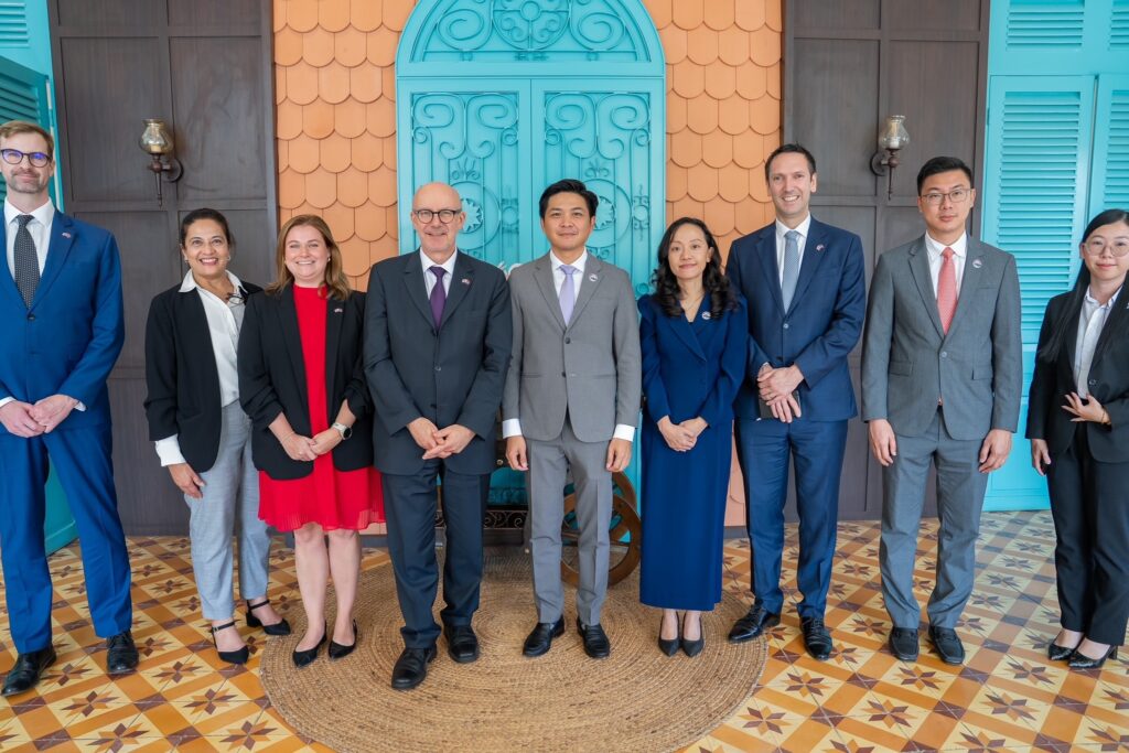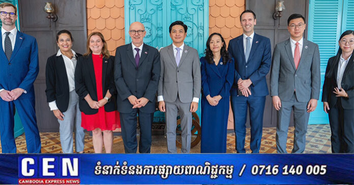 ភ្នំពេញ ៖ ស្ថានទូតចក្រភពអង់គ្លេសប្រចាំកម្ពុជា នៅថ្ងៃទី២០ខែតុលានេះ បានចេញផ្សាយព័ត៌មានឲ្យដឹងថា បន្ទាប់ពីកិច្ចប្រជុំនៅទីក្រុងឡុងដ៍ ប្រេសិតពាណិជ្ជកម្មរបស់នាយករដ្ឋមន្រ្តីអង់គ្លេស លោក Matt Western MP បានជួបជាមួយ ឯកឧត្តម សំហេង បូរ៉ា រដ្ឋលេខាធិការ ក្រសួង ក្រសួងពាណិជ្ជកម្ម Ministry of Commerce ដើម្បីពិនិត្យវឌ្ឍនភាពលើវេទិកាពាណិជ្ជកម្ម និងវិនិយោគរួមគ្នារវាងចក្រភពអង់គ្លេស-កម្ពុជា(JTIF) និងពិភាក្សាអំពីការចូលជាសមាជិក CPTPP របស់កម្ពុជា។