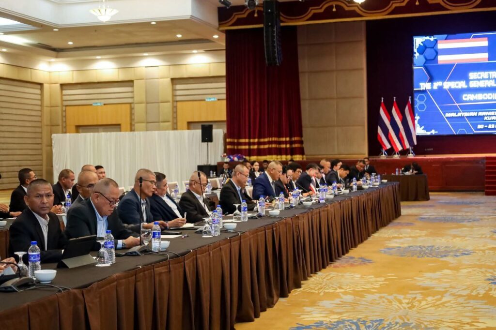 បានថ្លែងថា ក្រសួងការពារជាតិ នៃព្រះរាជាណាចក្រកម្ពុជា សូមជម្រាបជូនសាធារណជន អ្នកសារព័ត៌មានជាតិ និងអន្តរជាតិមេត្តាជ្រាបថា៖ កិច្ចប្រជុំក្រុមលេខាធិការដ្ឋាននៃ គណៈកម្មាធិការព្រំដែនទូទៅកម្ពុជា-ថៃ (GBC) បានចាប់ផ្តើមកិច្ចប្រជុំហើយ នាវេលាម៉ោង ១៨:០០នាទី នៅទីក្រុងកូឡាឡាំពួ ប្រទេសម៉ាឡេស៊ី។ នៅក្នុងកិច្ចប្រជុំនេះ ភាគីទាំងពីរបានធ្វើការពិភាក្សានូវខ្លឹមសារ និងធ្វើការផ្លាស់ប្តូរឯកសារគ្នាទៅវិញទៅមក ដើម្បីត្រៀមរៀបចំ កិច្ចប្រជុំពិសេសលើកទី២ នៃគណៈកម្មាធិការព្រំដែនទូទៅកម្ពុជា-ថៃ (GBC) ដែលនឹងប្រព្រឹត្តនៅថ្ងៃទី២៣ ខែតុលា ឆ្នាំ២០២៥ ខាងមុខនេះ ដើម្បីជំរុញបន្ថែមការអនុវត្តបទឈប់បាញ់ឱ្យបានពេញលេញ និងប្រកបដោយប្រសិទ្ធភាព ព្រមទាំងស្វែងរកកិច្ចសហប្រតិបត្តិការជាក់ស្តែងសំដៅលើកកម្ពស់សន្តិភាព និងស្ថិរភាពរវាងប្រទេសទាំងពីរ ក៏ដូចជាការវិលត្រឡប់ទៅរកប្រក្រតីភាពឡើងវិញ។ គណៈប្រតិភូក្រុមលេខាធិការរបស់កម្ពុជា ដឹកនាំដោយ ឧត្តមសេនីយ៍ទោ ញ៉ែម បូរ៉ាដែន ប្រធានក្រុមលេខាធិការ (GBC) កម្ពុជា និងគណៈប្រតិភូក្រុមលេខាធិការរបស់ថៃ ដឹកនាំដោយ ឧត្តមសេនីយ៍ ឯក ណាត់ថាផុង ប្រាវកែវ ប្រធានក្រុមលេខាធិការ (GBC ) ថៃ។