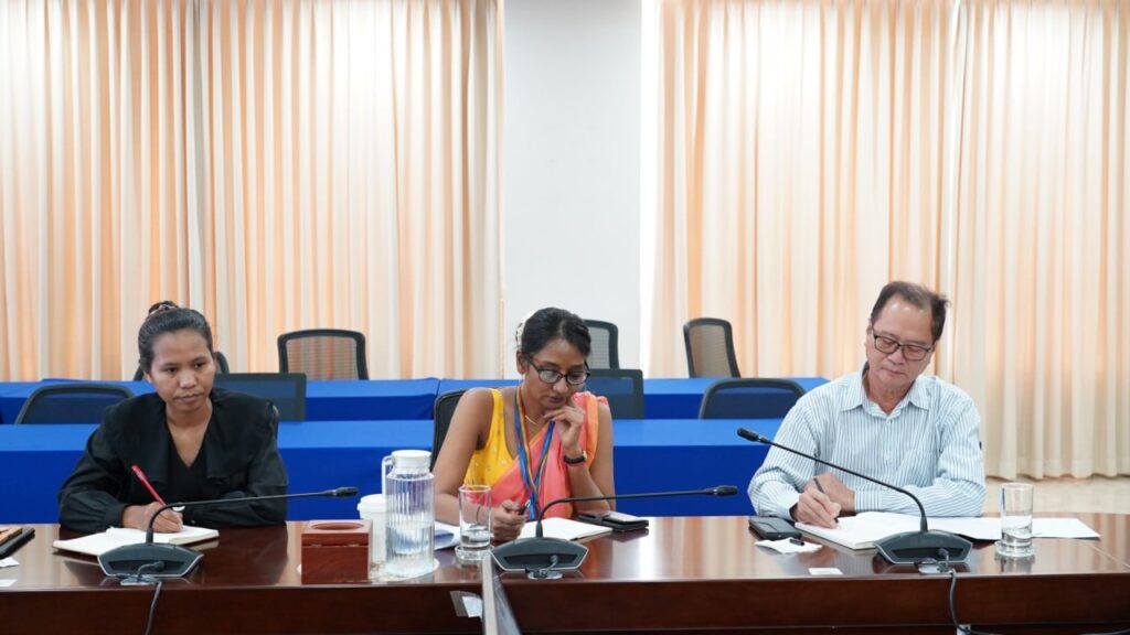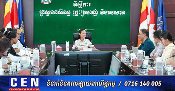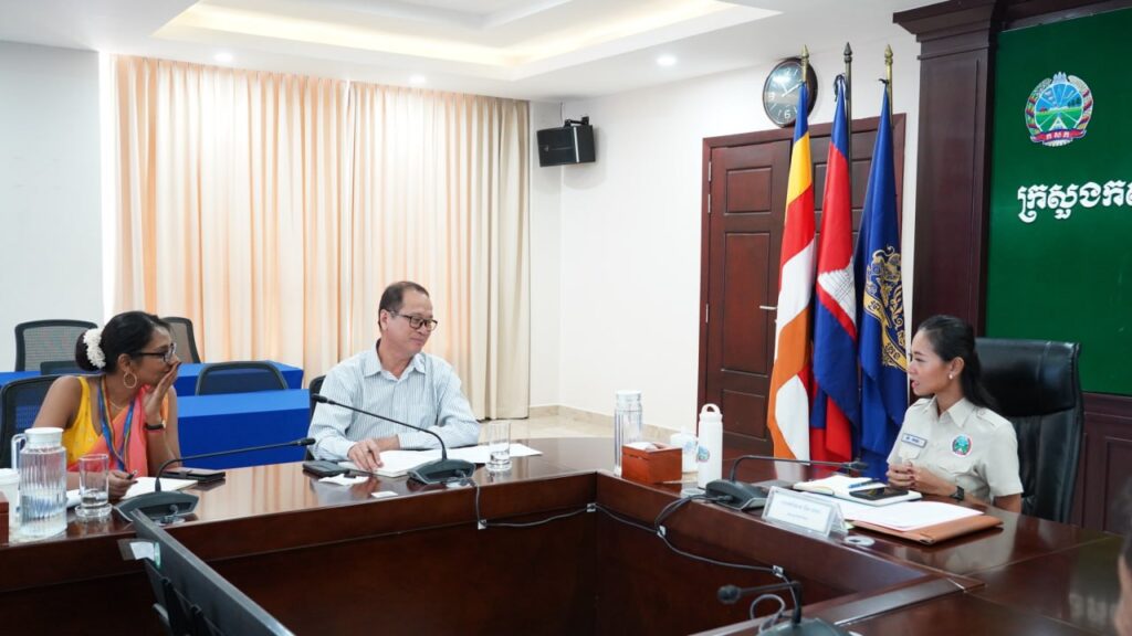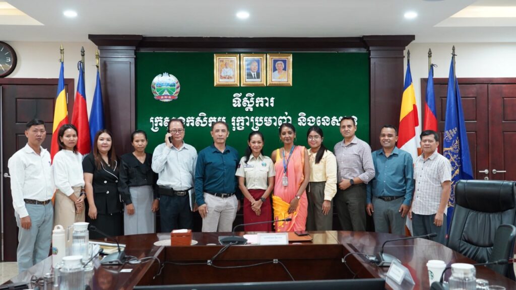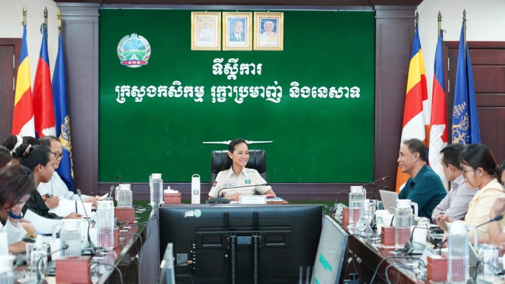 ភ្នំពេញ ៖ នៅថ្ងៃទី២០ ខែតុលា ឆ្នាំ២០២៥ លោកជំទាវ អ៊ឹម រចនា អនុរដ្ឋលេខាធិការក្រសួងកសិកម្ម រុក្ខាប្រមាញ់ និងនេសាទ បានទទួលជួបពិភាក្សាការងារជាមួយ អង្គការស្បៀង និងកសិកម្មនៃសហប្រជាជាតិ (FAO) ពីកិច្ចសហការត្រៀមរៀបចំទស្សនកិច្ចសិក្សាសម្រាប់អ្នកសារព័ត៌មាន អំពី វឌ្ឍនភាពស្តីពី «ការធ្វើឌីជីថលនៃការគ្រប់គ្រងជលផលសមុទ្រនៅកម្ពុជា» នៅខេត្តព្រះសីហនុ។