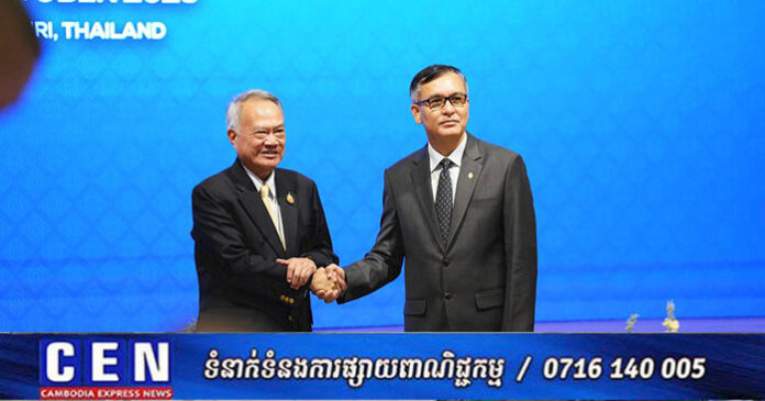 ប្រទេសថៃ ៖ កិច្ចប្រជុំពេញអង្គគណៈកម្មការចម្រុះខណ្ឌសីមាព្រំដែនគោកកម្ពុជា-ថៃ (JBC) បានចាប់ផ្តើមដំណើរការនៅម៉ោង ១២:១២នាទីថ្ងៃត្រង់ ថ្ងៃទី២១ ខែតុលា ឆ្នាំ២០២៥ នៅខេត្តចន្ទបុរី ប្រទេសថៃ ដែលភាគីថៃធ្វើជាម្ចាស់ផ្ទះ។