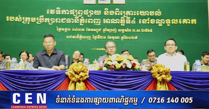 ភ្នំពេញ ៖ រដ្ឋបាលរាជធានីភ្នំពេញ បានសន្យាដោះស្រាយតម្រូវការចាំបាច់ជាច្រើនជូនប្រជាពល រដ្ឋរស់នៅក្នុងខណ្ឌទួលគោក ដើម្បីជួយសម្រួលការលំបាកក្នុងជីវភាពប្រចាំថ្ងៃរបស់ប្រជាពលរដ្ឋនៅមូលដ្ឋាន ។ ឯកឧត្ដម ឯក ឃុនដឿន អភិបាលរងតំណាងឯកឧត្ដមអភិបាលរាជធានីរាជធានីភ្នំពេញ បានមានប្រសាសន៍បែបនេះនៅក្នុងពិធីបើកវេទិកាផ្សព្វផ្សាយនិងពិគ្រោះយោបល់របស់ក្រុមប្រឹក្សារាជធានីភ្នំពេញ អាណត្តិទី៤ នៅខណ្ឌទួលគោក នាពីព្រឹកថ្ងៃទី២១ ខែតុលា ឆ្នាំ២០២៥ នៅមជ្ឈមណ្ឌលកិច្ចសហប្រតិបត្តិការកម្ពុជាកូរ៉េក្រោមអធិបតីភាពឯកឧត្ដមម៉ប សារិន ប្រធានក្រុមប្រឹក្សារាជធានីភ្នំពេញ។