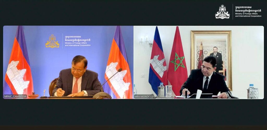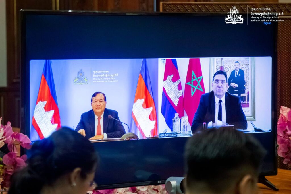 ភ្នំពេញ ៖ នៅសៀលថ្ងៃទី២១ ខែតុលា ឆ្នាំ២០២៥ ឯកឧត្តមឧបនាយករដ្ឋមន្ត្រី ប្រាក់ សុខុន រដ្ឋមន្ត្រីក្រសួងការបរទេសនិងសហប្រតិបត្តិការអន្តរជាតិ បានជួបពិភាក្សាការងារតាមប្រព័ន្ធវីដេអូជាមួយ ឯកឧត្តម Nasser BOURITA រដ្ឋមន្ត្រីក្រសួងការបរទេស សហប្រតិបត្តិការអាហ្រ្វិក និងជនអន្តោប្រវេសន៍ម៉ារ៉ុក។