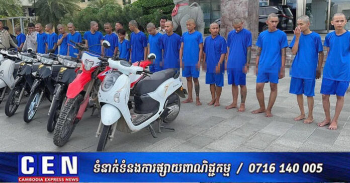 ភ្នំពេញ ៖ កម្លាំងសមត្ថកិច្ចព្រហ្មទណ្ឌកម្រិតស្រាល នៃស្នងការដ្ឋាននគរបាលរាជធានីភ្នំេពញ នារសៀលថ្ងៃទី ២១ ខែតុលា ឆ្នាំ ២០២៥នេះ បានធ្វេីការបង្ហាញមុខជាសាធារណៈ ក្រោយពីសមត្ថកិច្ចជំនាញបង្ក្រាបបានជាបន្តបន្ទាប់ចំនួន២០នាក់ ដែលពាក់ពន្ធនឹងទៅនឹងករណី ៖ កាប់ប្លន់យកម៉ូតូ, ក្លែងបន្លំជាកម្លាំងសមត្ថកិច្ច, លួចយកម៉ូតូ និងប្រេីប្រាស់ហឹង្សាដេញកាប់ទៅលេីជនរងគ្រោះផងដែរ។