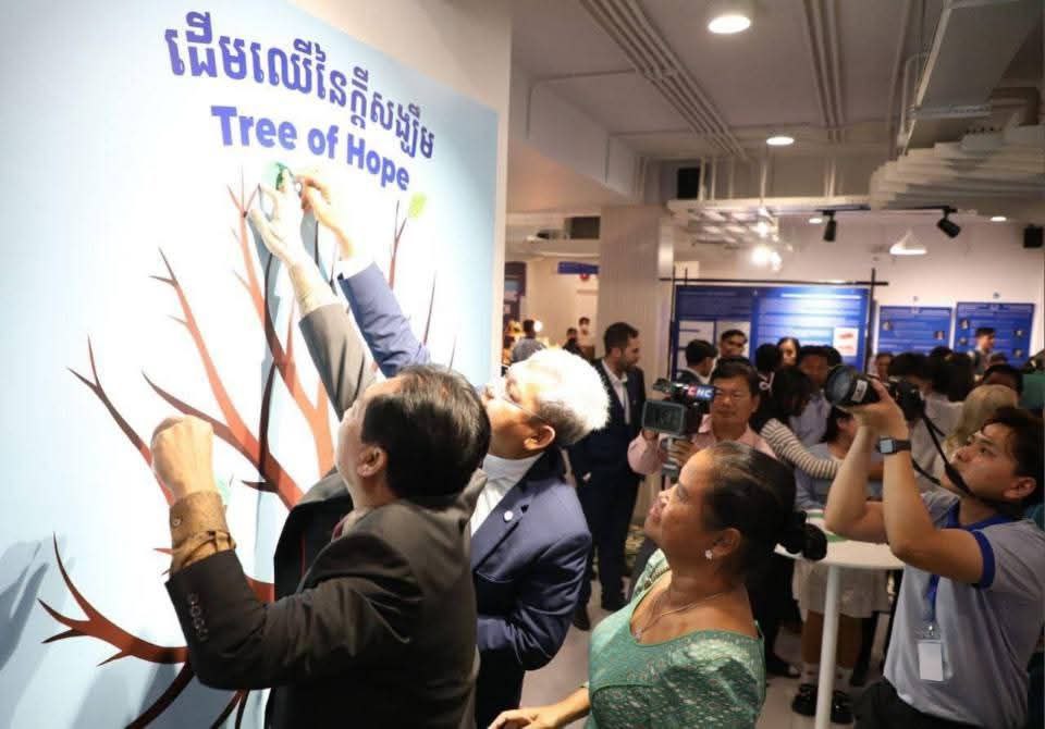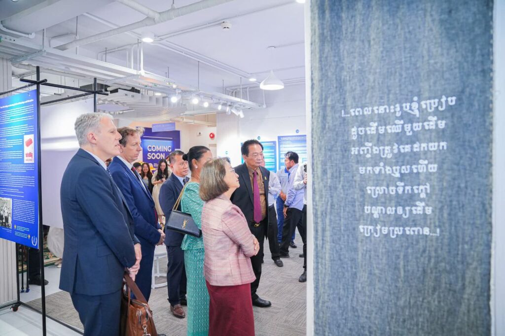 ពិធីតាំងពិព័រណ៍នេះមានការអញ្ជើញចូលរួមពីសំណាក់ លោកជំទាវកិត្តិបណ្ឌិត អុឹង កន្ថាផាវី រដ្ឋមន្រ្តីក្រសួងកិច្ចការនារី ឯកឧត្តមបណ្ឌិត ម៉ុង ឫទ្ធី ប្រធានគណៈកម្មការទី៣នៃព្រឹទ្ធសភានិងលោកជំទាវ ព្រមទាំងក្រុមការងាររាជរដ្ឋាភិបាលទទួលបន្ទុកដំណើរការអនុវត្តមុខងារសេសសល់របស់ អ.វ.ត.ក. តំណាងមន្រ្តីរដ្ឋាភិបាល តំណាងស្ថានទូតនានា សិស្ស និស្សិត និងអ្នកសារព័ត៌មានមកពីស្ថាប័នផ្សេងៗគ្នាចំនួន១២៨នាក់។ក្នុងកម្មវិធីតាំងពិព័រណ៍នេះ នឹងមានការបង្ហាញនូវប្រធានបទចំនួនបីសំខាន់ៗ រួមមាន៖