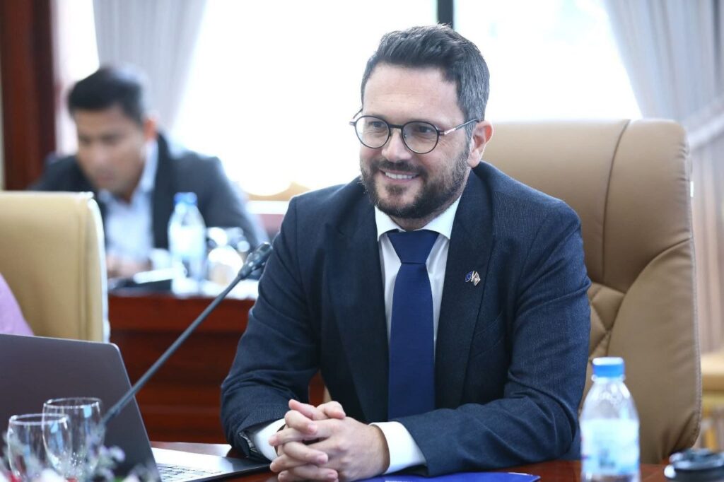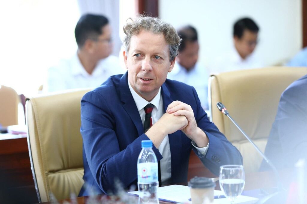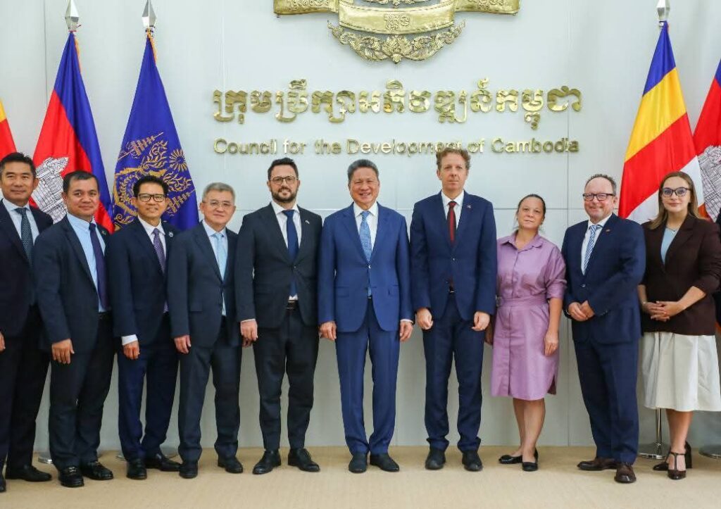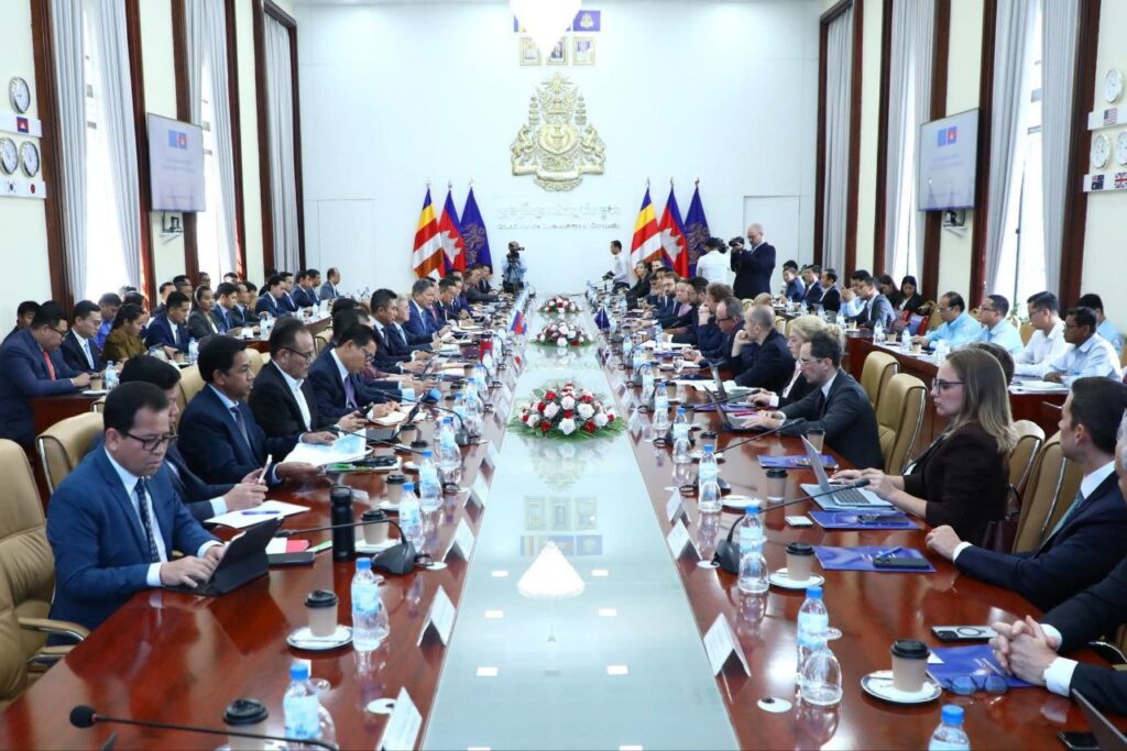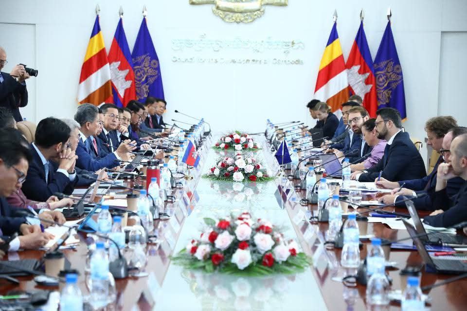 ភ្នំពេញ ៖ ឯកឧត្ដម ស៊ុន ចាន់ថុល ឧបនាយករដ្ឋមន្រ្តី អនុប្រធានទី១ ក្រុមប្រឹក្សាអភិវឌ្ឍន៍កម្ពុជា រួមជាមួយ ឯកឧត្តម Igor Driesmans ឯកអគ្គរដ្ឋទូតវិសាមញ្ញនិងពេញសមត្ថភាព នៃគណៈប្រតិភូសហភាពអឺរ៉ុបប្រចាំកម្ពុជា បានអញ្ជើញដឹកនាំកិច្ចសន្ទនាលើកទី៣ រវាងរដ្ឋនិងវិស័យឯកជន កម្ពុជា-សហភាពអ៊ឺរ៉ុប ដោយមានការចូលរួមពី លោក Gabriele Faja ប្រធានសភាពាណិជ្ជកម្មអឺរ៉ុបនៅកម្ពុជា(EuroCham), ឯកឧត្តម Stefan Messerer ឯកអគ្គរដ្ឋទូតវិសាមញ្ញនិងពេញសមត្ថភាព នៃសាធារណរដ្ឋសហព័ន្ធអាល្លឺម៉ង់ប្រចាំនៅកម្ពុជា, តំណាងក្រសួង-ស្ថាប័នពាក់ព័ន្ធ, តំណាងក្រុមប្រឹក្សាធុរកិច្ចសហភាពអ៊ឺរ៉ុប-អាស៊ាន (EU-ABC), វិស័យឯកជន និងមន្ត្រីជំនាញជាច្រើនរូប នាក្រុមប្រឹក្សាអភិវឌ្ឍន៍កម្ពុជា នាព្រឹកថ្ងៃពុធ ទី២២ ខែមេសា ឆ្នាំ២០២៥ ។