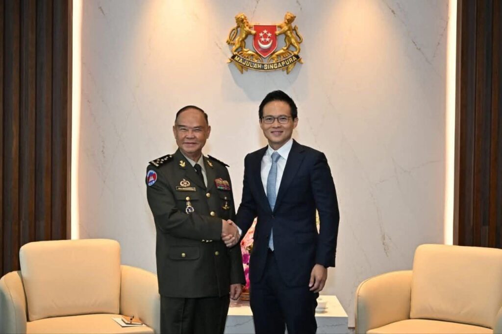ភ្នំពេញ ៖ ដោយមានការអនុញ្ញាតពី ក្រសួងការពារជាតិ អគ្គបញ្ជាការ នាយឧត្តមសេនីយ៍ ម៉ៅ សុផាន់ អគ្គមេបញ្ជាការរង នៃកងយោធពលខេមរភូមិន្ទ មេបញ្ជាការកងទ័ពជើងគោក បានអញ្ជើញដឹកនាំប្រតិភូទៅបំពេញទស្សនកិច្ចផ្លូវការនៅប្រទេសិង្ហបុរី ចាប់ពីថ្ងៃទី២១ ដល់ថ្ងៃទី២៣ ខែតុលា ឆ្នាំ២០២៥។