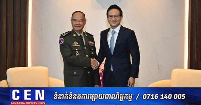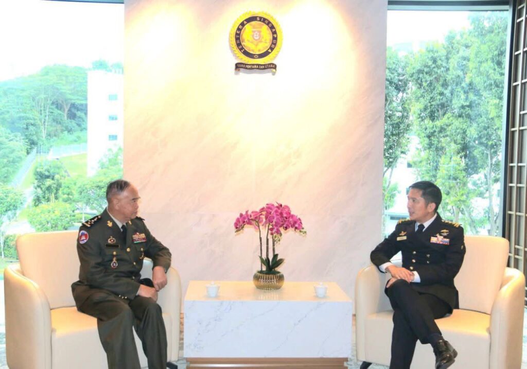 ឯកឧត្តម នាយឧត្តមសេនីយ៍ ម៉ៅ សុផាន់ បានចូលជួបសម្តែងការគួរសមជាមួយ ឯកឧត្តម DESMOND CHOO រដ្ឋលេខាធិការក្រសួងការពារជាតិសិង្ហបុរី និង ឯកឧត្តម ឧត្តមនាវីឯក AARON BENG អគ្គមេបញ្ជាការកងទ័ពសិង្ហបុរី ព្រមទាំងបានជួបពិភាក្សាការងារទ្វេភាគីជាមួយ ឯកឧត្តម ឧត្តមសេនីយ៍ទោ CAI DEXIAN មេបញ្ជាការកងទ័ពជើងគោកសិង្ហបុរី ក្នុងគោលបំណងពង្រឹងកិច្ចសហប្រតិបត្តិការការពារជាតិរវាងប្រទេសទាំងពីរ កម្ពុជា-សិង្ហបុរី ឲ្យកាន់តែស៊ីជម្រៅ។