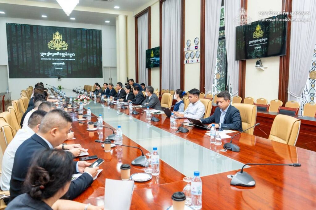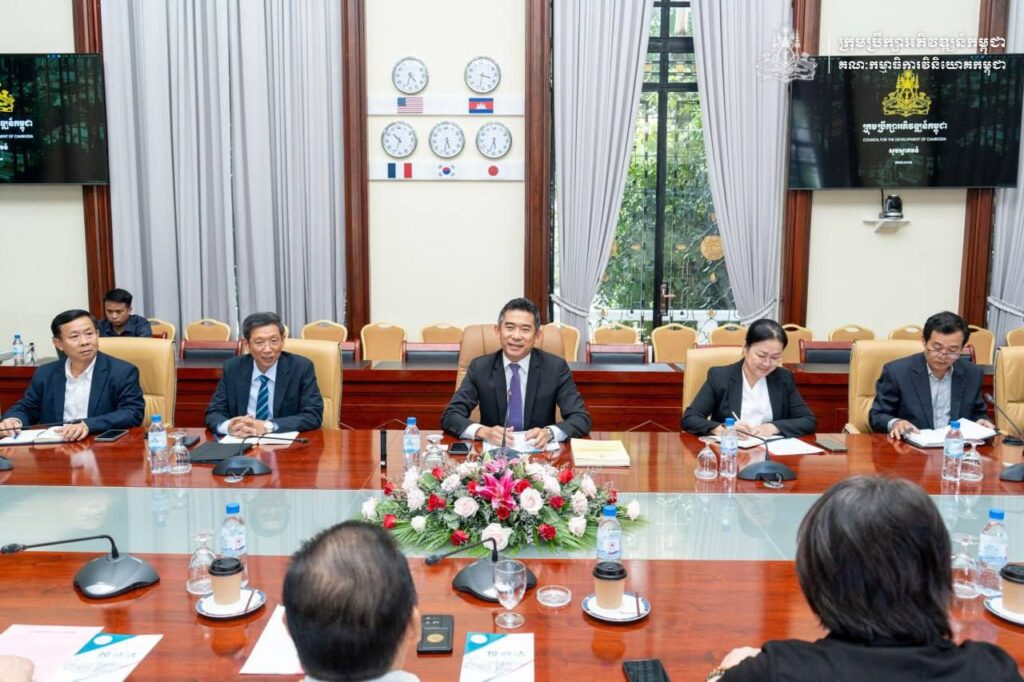 ភ្នំពេញ ៖ ឯកឧត្តម នុត អ៊ុនវ័ណរ៉ា អគ្គលេខាធិការរងគណៈកម្មាធិការវិនិយោគកម្ពុជានៃក្រុមប្រឹក្សាអភិវឌ្ឍន៍កម្ពុជា និងសហការី បានទទួលជួបពិភាក្សាការងារជាមួយគណៈប្រតិភូវិនិយោគិនមកពីទីក្រុងឆឹងទូ ឈុងឈីង និងប្រទេសម៉ាទ្បេស៊ី ដឹកនាំដោយលោកសាស្ត្រាចារ្យបណ្ឌិត Tan Yew Kuan នាយកប្រតិបត្តិ Asia Pacific Top Excellence Brand Committee និងលោក Gan Dehong ប្រធានសភាពាណិជ្ជកម្ម Chengdu Machinery Manufacturing ទីស្តីការក្រុមប្រឹក្សាអភិវឌ្ឍន៍កម្ពុជា នារសៀលថ្ងៃព្រហស្បតិ៍ ២កើត ខែកត្តិក ឆ្នាំម្សាញ់ សប្តស័ក ពុទ្ធសករាជ ២៥៦៩ ត្រូវនឹងថ្ងៃទី២៣ ខែតុលា ឆ្នាំ២០២៥ ។