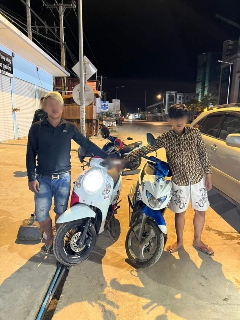 នៅថ្ងៃទី២២ ខែតុលា ឆ្នាំ២០២៥ វេលាម៉ោងប្រហែល ០១ និង៣០នាទី យប់អធ្រាត្រ សមត្ថកិច្ចប៉ុស្តិ៍នគរបាលរដ្ឋបាលឃ្មួញ បានល្បាតក្នុងមូលដ្ឋាន តាមបណ្តោយផ្លូវបេតុង ក្នុងភូមិសែនសុខ២ សង្កាត់ឃ្មួញ ខណ្ឌសែនសុខ រាជធានីភ្នំពេញ ក៏បានឃើញជនសង្ស័យឈ្មោះ យ៉េន ហេងលី ភេទប្រុស អាយុ២៥ឆ្នាំ ជនជាតិខ្មែរ កំពុងជិះម៉ូតូម៉ាកនិច ពណ៌ស ស៊េរី២០២០ ពាក់ផ្លាកលេខ ត្បូងឃ្មុំ 1I-7354 ធាក់រុញសណ្តោងជនសង្ស័យឈ្មោះ ម៉ែន ពិសាល ភេទប្រុស អាយុ៣១ឆ្នាំ ជនជាតិខ្មែរ ដែលជិះលើម៉ូតូម៉ាកស្កូបពី ពណ៌ស ស៊េរី២០២១ ពាក់ផ្លាកលេខ ភ្នំពេញ 1IT-7711 មានការសង្ស័យ សមត្ថកិច្ចក៏ហៅឲ្យសួរនាំ និងបានត្រួតពិនិត្យរកឃើញ ដែកកែច្នៃចុងស្រួច ចំនួន០១(សម្រាប់ចាក់បំបែកគ្រាប់សោរកម៉ូតូ) និងសោរទីពលេខ៨ ចំនួ០១ នៅក្នុងកាបូបស្ពាយចំហៀង(របស់ឈ្មោះ យ៉េន ហេងលី ស្ពាយជាប់ខ្លួន) និងសម្ភារផ្សេងមួយចំនួនទៀត បន្ទាប់មក សមត្ថកិច្ចក៏ឃាត់ខ្លួនឈ្មោះ យ៉េន ហេងលី និងឈ្មោះ ម៉ែន ពិសាល រួមទាំងវត្ថុតាង ម៉ូតូ០២គ្រឿង(ខាងលើ ម៉ាកនិច និងម៉ាកស្កូបពី) និងសម្ភារវត្ថុតាង យកមកសាកសួរ។