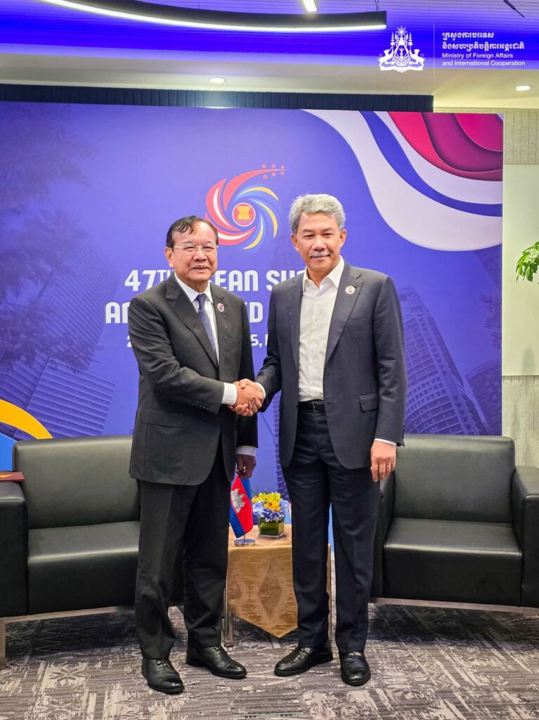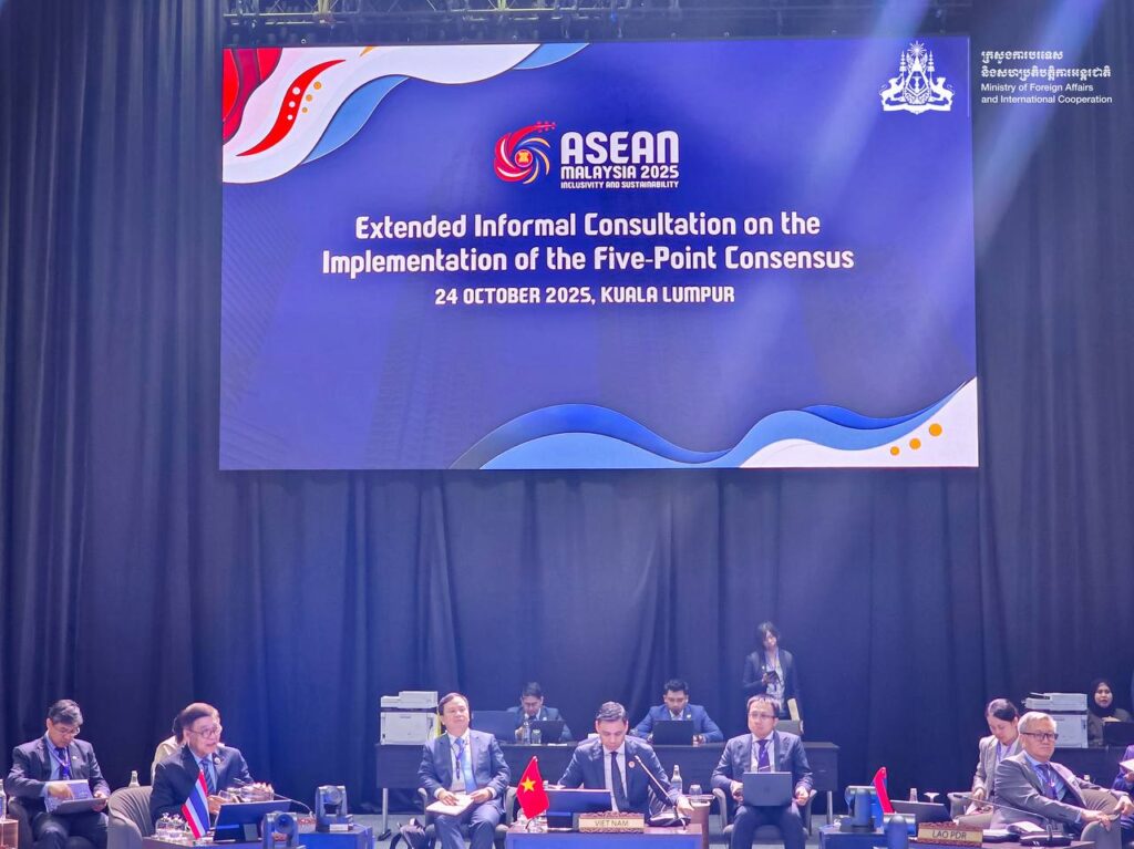 ប្រទេសម៉ាឡេស៊ី ៖ នៅរសៀលថ្ងៃទី២៤ ខែតុលា ឆ្នាំ២០២៥ ឯកឧត្តមឧបនាយករដ្ឋមន្ត្រី ប្រាក់ សុខុន រដ្ឋមន្ត្រីការបរទេស និងសហប្រតិបត្តិការអន្តរជាតិ បានអញ្ជើញចូលរួមកិច្ចពិគ្រោះយោបល់ក្រៅផ្លូវការក្នុងទម្រង់ពង្រីក នៅទីក្រុងគូឡាឡាំពួ ប្រទេសម៉ាឡេស៊ី។ កិច្ចពិគ្រោះយោបល់នេះបានគូសបញ្ជាក់ពីការប្តេជ្ញាចិត្តរបស់អាស៊ានចំពោះកិច្ចព្រមព្រៀងជាឯកច្ឆន្ទប្រាំចំណុច (5PC) ដើម្បីសន្តិភាព និងដំណោះស្រាយយូរអង្វែងនៅមីយ៉ាន់ម៉ា។