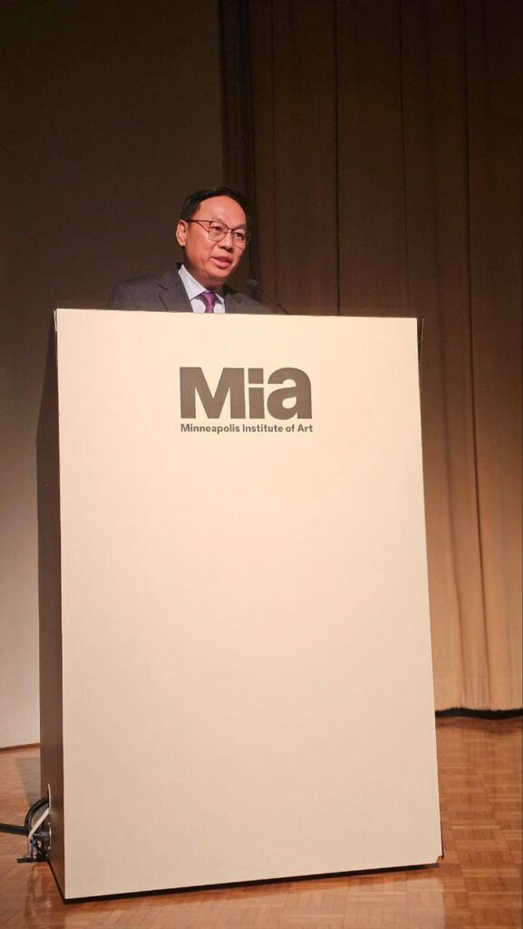 នារសៀលថ្ងៃសុក្រ ៣កើត ខែកក្តិក ឆ្នាំម្យាញ់ សប្តស័ក្ត ពុទ្ធសករាជ២៥៦៩ ត្រូវនឹងថ្ងៃទី២៤ ខែតុលា ឆ្នាំ២០២៥ ឯកឧត្តម ហាប់ ទូច រដ្ឋលេខាធិការប្រចាំការ និងជាតំណាងដ៏ខ្ពង់ខ្ពស់របស់លោកជំទាវបណ្ឌិតសភាចារ្យ រដ្ឋមន្ត្រីក្រសួងវប្បធម៌និងវិចិត្រសិល្បៈ បានចូលរួមកម្មវិធីសម្ពោធបើកពិព័រណ៍ចល័តមិនអចិន្ត្រៃយ៍ស្តីពីរាជសំរឹទ្ធខ្មែរ៖ សិល្បៈនៃអាទិទេព (Royal Bronzes: Cambodian Art of the Devine) នៅសារមន្ទីរសិល្បៈមីនីអាប៉ូលី (Minneapolis Institute of Art) នៃរដ្ឋមីនីសូតា សហរដ្ឋអាមេរិក និងមានអ្នកចូលរួមប្រមាណ២០០នាក់។