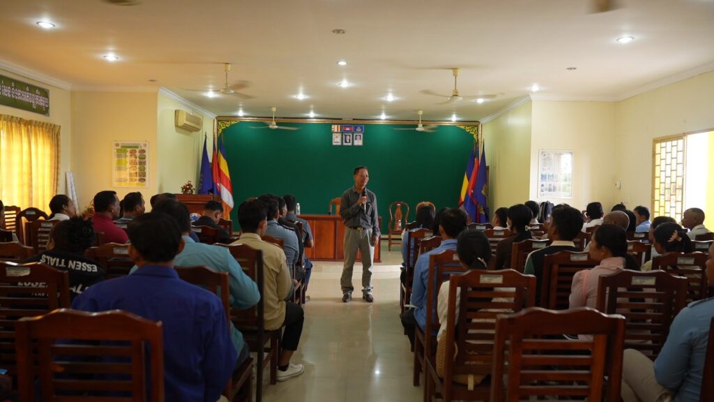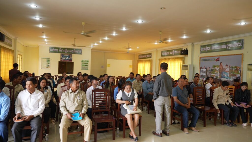 ខេត្តបន្ទាយមានជ័យ ៖ នៅថ្ងៃទី២៤ ខែតុលា ឆ្នាំ២០២៥ ឯកឧត្តម ឃឹម ហ្វីណង់ អនុរដ្ឋលេខាធិការទទួលបន្ទុកការងារអភិវឌ្ឍន៍សហគមន៍កសិកម្ម បានអញ្ជើញជួបពិភាក្សាការងារជាមួយថ្នាក់ដឹកនាំរបស់សហគមន៍កសិកម្មទំនើបដំណាំស្រូវចំនួន៦ មកពីខេត្តបន្ទាយមានជ័យ និងខេត្តបាត់ដំបង នៅមន្ទីរកសិកម្មខេត្តបាត់ដំបង ដែលជាកិច្ចប្រជុំរួមគ្នាដំបូងមួយ ដើម្បីណែនាំពីប្រព័ន្ធគ្រប់គ្រងសហគមន៍ និងរបៀបរបបការងារឱ្យស្របតាមគោលការណ៍តម្រូវនៃសហគមន៍កសិកម្មទំនើប។
