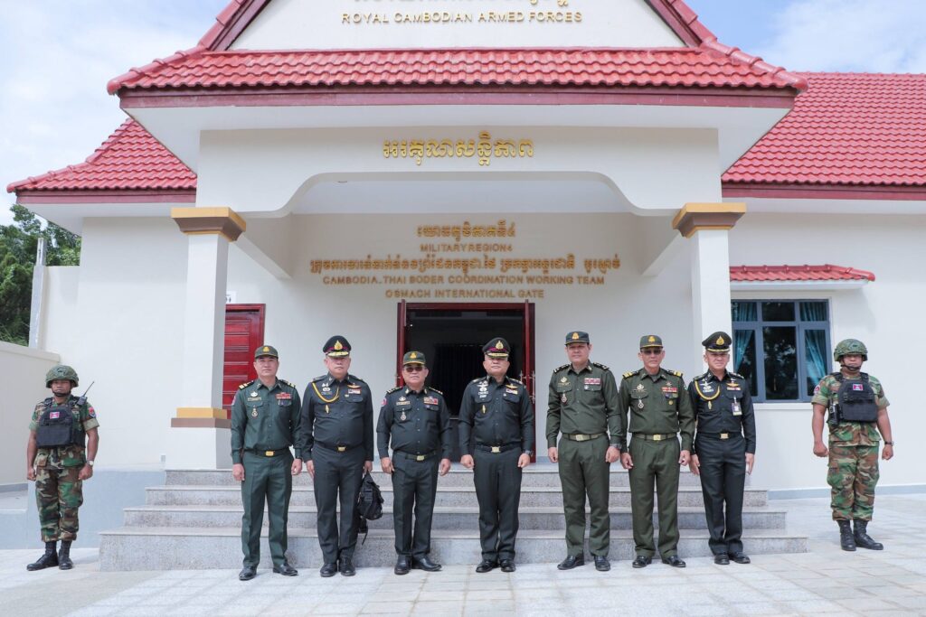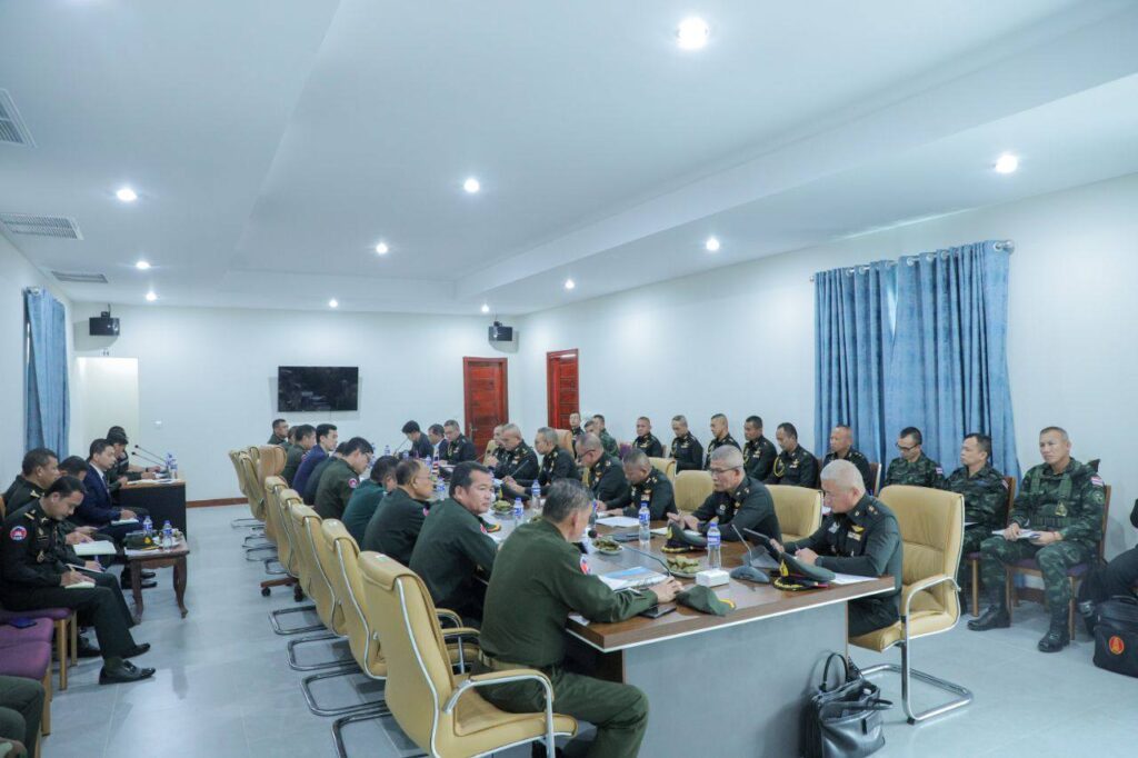 ច្រកទ្វារព្រំដែនអន្តរជាតិអូរស្មាច់ ៖ លោកជំទាវ ឧត្តមសេនីយ៍ឯក ម៉ាលី សុជាតា អ្នកនាំពាក្យក្រសួងការពារជាតិ នៃព្រះរាជាណាចក្រកម្ពុជា បានចេញសេចក្តីប្រកាសព័ត៌មានជម្រាបជូនសាធារណជន អ្នកសារព័ត៌មានជាតិ និងអន្តរជាតិមេត្តាជ្រាបថា៖ នៅថ្ងៃទី២៥ ខែតុលា ឆ្នាំ២០២៥ វេលាម៉ោង ១០:០០នាទីកាលពីព្រឹកមិញនេះ ឯកឧត្តម ឧត្តមសេនីយ៍ឯក ពៅ ហេង មេបញ្ជាការយោធភូមិភាគទី៤ នៃកងយោធពលខេមរភូមិន្ទ បានជួបពិភាក្សាការងារជាមួយ ឯកឧត្តម ឧត្តមសេនីយ៍ទោ វីរ៉ាក់យុទ្ធ រ៉ាក់ស៊ីង មេបញ្ជាការកងទ័ពភូមិភាគទី២ ថៃ នៅច្រកទ្វារព្រំដែនអន្តរជាតិអូរស្មាច់។