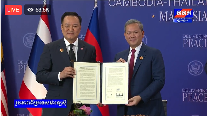 ថ្ងៃនេះត្រូវបានកត់ត្រាជាព្រឹត្តិការណ៍ប្រវត្តិសាស្ត្រដ៏មានសារៈសំខាន់ជាសារវ័ន្ត សម្រាប់កម្ពុជា និងថៃ ដែលបានបញ្ជាក់ឡើងវិញនូវការជឿជាក់រួមគ្នានៃប្រទេសយើងទាំងពីរថា សន្តិភាពនៅតអាចមាន