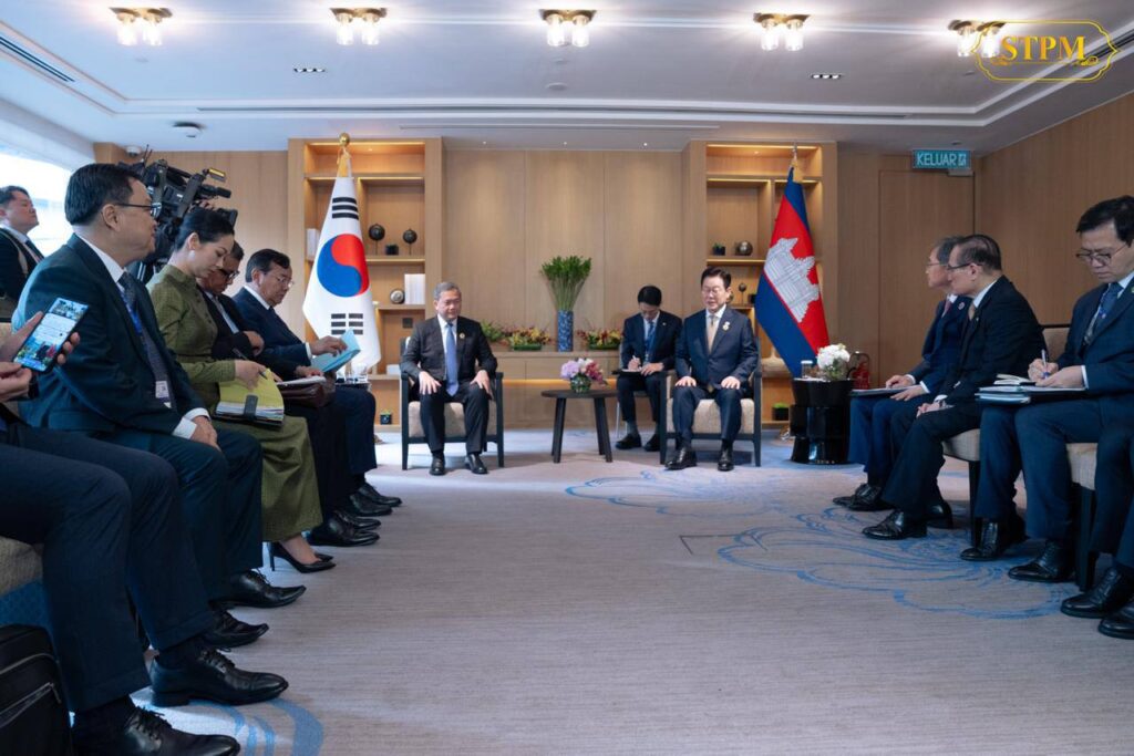 ទីក្រុងគូឡាឡាំពួ ៖ ព្រឹកថ្ងៃចន្ទ ទី២៧ តុលា ២០២៥ សម្តេចមហាបវរធិបតី ហ៊ុន ម៉ាណែត នាយករដ្ឋមន្រ្តីនៃព្រះរាជាណាចក្រកម្ពុជា បានអញ្ជើញជួបជាមួយ ឯកឧត្តម Lee Jae Myung ប្រធានាធិបតីនៃសាធារណរដ្ឋកូរ៉េ ក្នុងជំនួបទ្វេភាគី ពិភាក្សាការងារ។