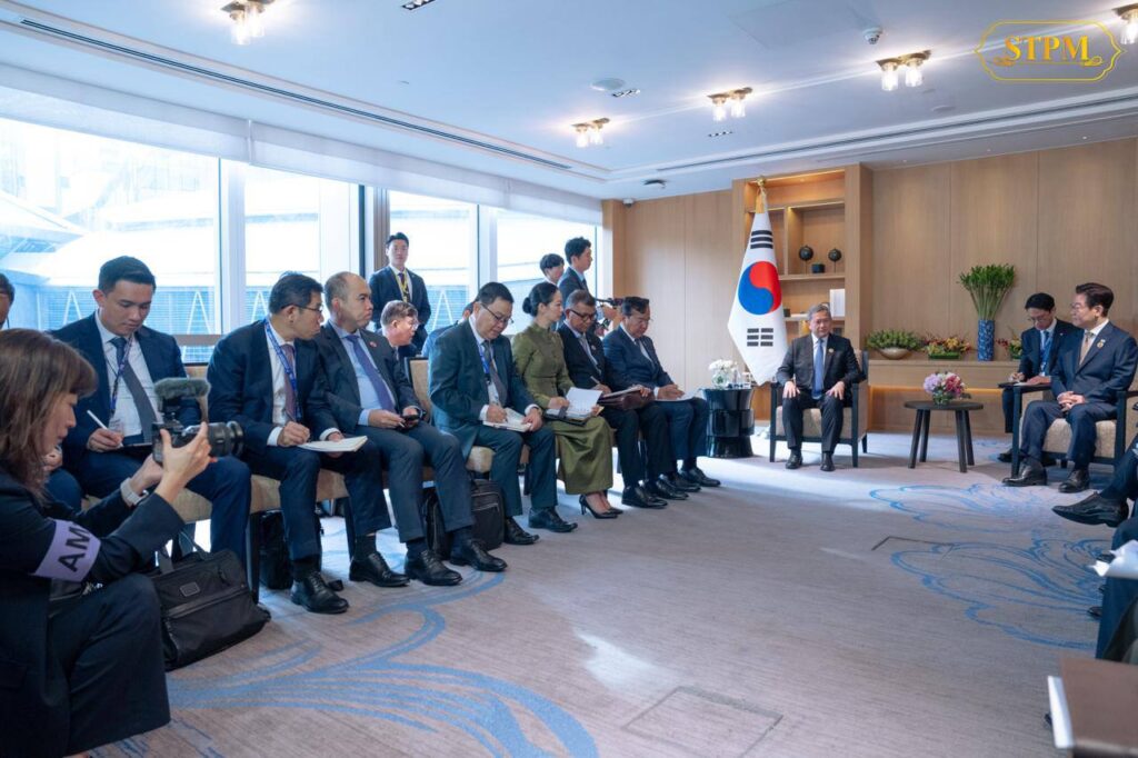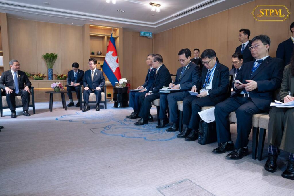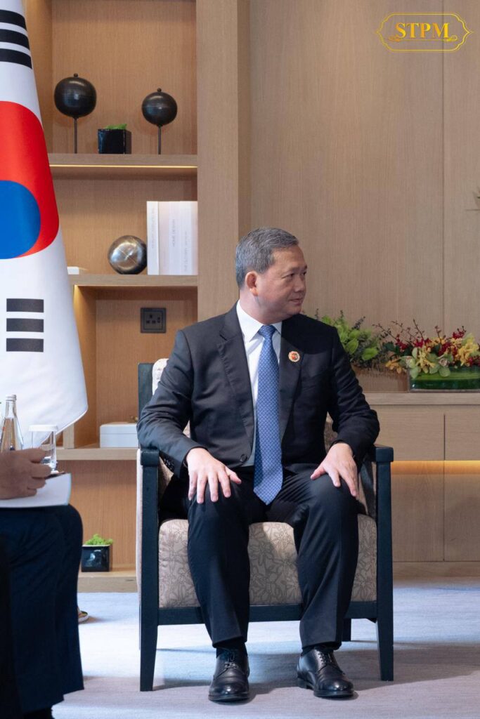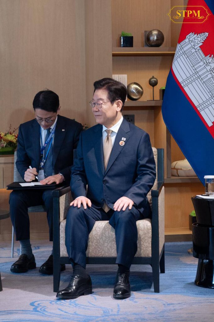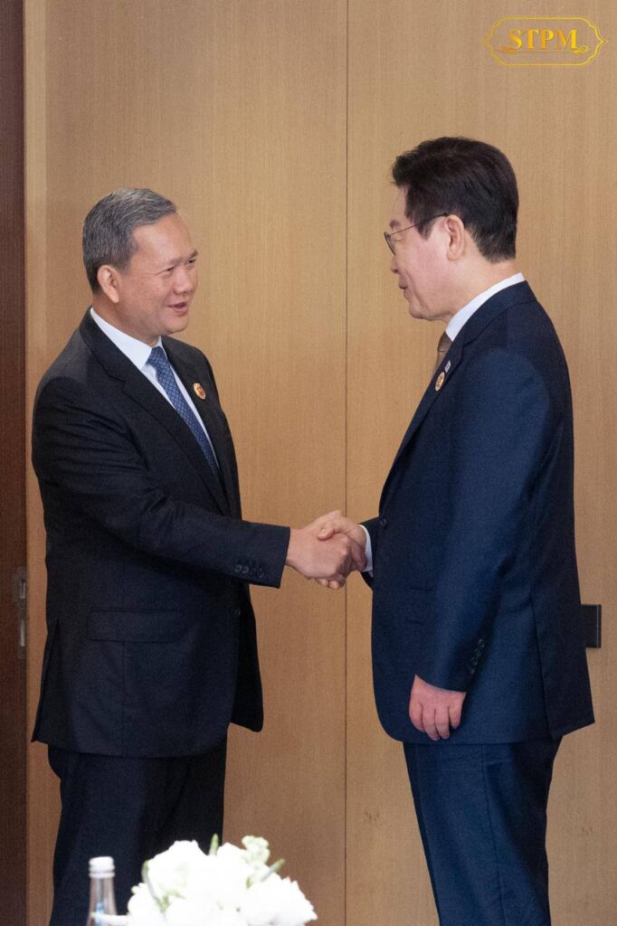 ក្នុងឱកាសនៃជំនួប, សម្ដេចបវរធិបតីបានអបអរសាទរចំពោះឯកឧត្តម Lee Jae-Myung ដែលបាន ក្លាយជាប្រធានាធិបតីនៃសាធារណរដ្ឋកូរ៉េ។ សម្តេចបវរធិបតី បានវាយតម្លៃខ្ពស់ ចំពោះទំនាក់ទំនងកម្ពុជា-សាធារណរដ្ឋកូរ៉េ ដែលត្រូវបានភ្ជាប់ឡើងវិញនៅឆ្នាំ១៩៩៧ និងត្រូវបានដំឡើងកម្រិតដល់ភាពជាដៃគូយុទ្ធសាស្ត្រ នៅឆ្នាំ២០២៤ ដែលបានធ្វើឱ្យទំនាក់ទំនងទ្វេភាគីកាន់តែមានភាពរឹងមាំ និងស៊ីជម្រៅ ហើយកិច្ចសហប្រតិបត្តិការក៏កាន់តែរីកចម្រើនគួរឱ្យកត់សម្គាល់ ស្ទើរគ្រប់វិស័យ។