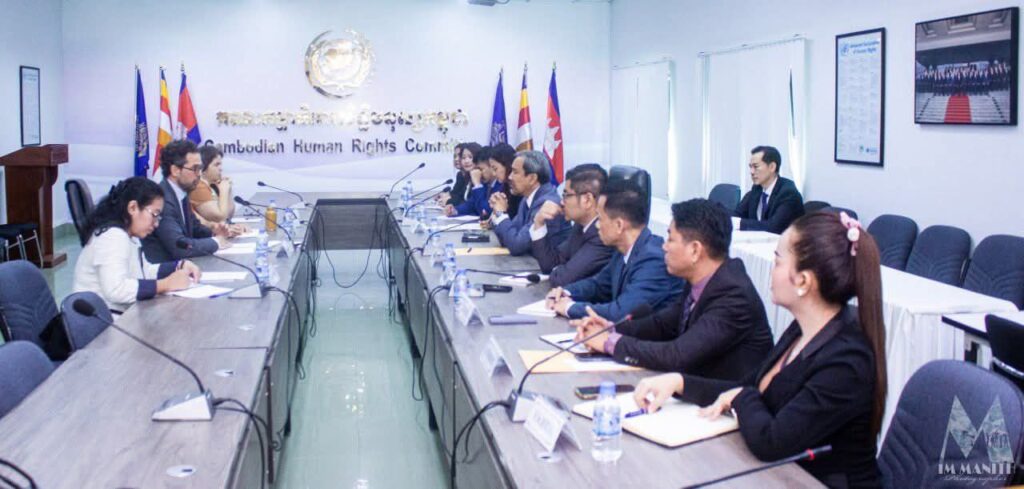 ភ្នំពេញ ៖ នៅព្រឹកថ្ងៃទី២៧ ខែតុលា ឆ្នាំ២០២៥ ឯកឧត្ដម កែវ រ៉េមី ទេសរដ្ឋមន្ត្រី និងជាប្រធានគណៈកម្មាធិការសិទ្ធិមនុស្សកម្ពុជា បានអនុញ្ញាតឱ្យលោក Benjamin Moreau តំណាងការិយាល័យអង្គការសហប្រជាជាតិ ទទួលបន្ទុកសិទ្ធិមនុស្សប្រចាំព្រះរាជាណាចក្រកម្ពុជា (OHCHR) ចូលជួបពិភាក្សាការងារ នៅសាលប្រជុំ របស់គណៈកម្មាធិការសិទ្ធិមនុស្សកម្ពុជា (គ.ស.ម.ក.)។ កិច្ចជំនួបនេះផ្តោតលើការពង្រឹងកិច្ចសហប្រតិបត្តិការ រវាង គ.ស.ម.ក. និងការិយាល័យអង្គការសហប្រជាជាតិទទួលបន្ទុកសិទ្ធិមនុស្សប្រចាំព្រះរាជាណាចក្រកម្ពុជា។