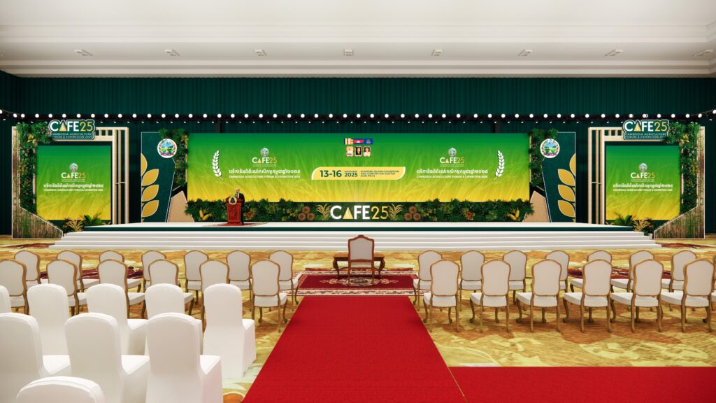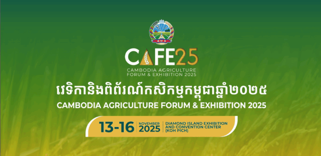 ភ្នំពេញ៖ ក្រសួងកសិកម្ម នឹងរៀបចំវេទិកា និងពិព័រណ៍ដ៏ធំប្រចាំឆ្នាំនេះ ដែលមានឈ្មោះថា វេទិកា និងពិព័រណ៍កសិកម្មកម្ពុជា CAFE25 នៅមជ្ឈមណ្ឌលពិព័រណ៍កោះពេជ្រ ចាប់ពីថ្ងៃទី១៣ ដល់ថ្ងៃទី១៦ ខែវិច្ឆិកា ឆ្នាំ២០២៥។