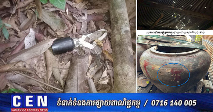 ភ្នំពេញ ៖ ស៊ីម៉ាក់-CMAC អំពាវនាវបងប្អូនប្រជាពលរដ្ឋករណីបានឃើញគ្រាប់មីន និងគ្រាប់យុទ្ធភណ្ឌមិនទាន់ផ្ទុះ ឬវត្ថុសង្ស័យជាគ្រាប់មិនទាន់ផ្ទុះ សូមកុំប៉ះពាល់ វាយដំ គប់លេង ឬយកទៅកែច្នៃផ្សេងៗ ដែលអាចបណ្តាលអោយផ្ទុះស្លាប់ របួស ពិការ និងសូមរាយការណ៍ទៅអាជ្ញាធរមូលដ្ឋាន ឬអង្គភាព CMAC ដើម្បីបោសសម្អាតគ្រាប់ទាំងនោះ។