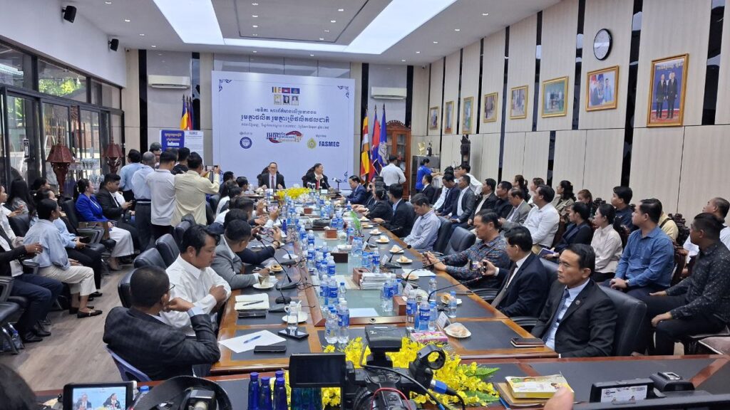 ភ្នំពេញ ៖ ក្លិបអ្នកកាសែតកម្ពុជា សហការជាមួយសមាគមមូលនិធិសម្ដេចតេជោ ដើម្បីអភិវឌ្ឍន៍សហគ្រាសធុនតូច និង មធ្យមនៅកម្ពុជាបានរៀបចំវេទិកាសារព័ត៌មានលើប្រធានបទ «ពង្រឹង និងពង្រីកសមត្ថភាពផលិតក្នុងស្រុក» ដែលប្រព្រឹត្តទៅ ថ្ងៃទី៣១ ខែតុលា ឆ្នាំ២០២៥ នៅ ទីកន្លែង ការិយាល័យកណ្តាលសមាគមមូលនិធិសម្ដេចតេជោ ដើម្បីអភិវឌ្ឍន៍សហគ្រាសធុនតូច និង មធ្យមនៅកម្ពុជា ស្ថិតនៅមហាវិថីព្រះនរោត្តម សង្កាត់ចតុមុខ ខណ្ឌចំការមន រាជធានីភ្នំពេញ (ទល់មុខក្រសួងកសិកម្ម រុក្ខាប្រមាញ់ និងនេសាទ)។