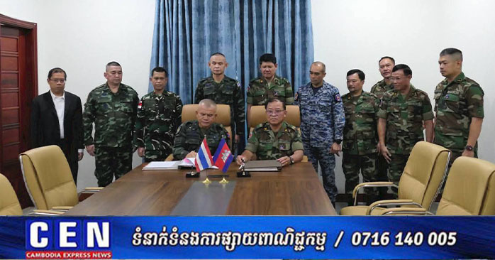 កិច្ចប្រជុំនេះត្រូវបានបញ្ចប់នៅវេលាម៉ោង ១៥:៤៧នាទី ជាលទ្ធផលភាគីទាំងពីរបានព្រមព្រៀង និងចុះហត្ថលេខាលើកំណត់ហេតុរួមស្តីពី “ការកែសម្រួលយុទ្ធោបករណ៍ អាវុធធុនធ្ងន់ និងឧបករណ៍បំផ្លិចបំផ្លាញធុនធ្ងន់”។ ភាគីទាំងពីរបានគូសបញ្ជាក់ពីការប្តេជ្ញាចិត្តយ៉ាងម៉ឺងម៉ាត់ក្នុងការអនុវត្តឯកសារសមិទ្ធផលដ៏មានសារៈសំខាន់នេះឱ្យបានពេញលេញ និងប្រកបដោយប្រសិទ្ធភាព។ ជាមួយគ្នានេះ កម្ពុជាសង្ឃឹមយ៉ាងមុតមាំថា ការបោះជំហានដ៏វិជ្ជមានមួយនេះនឹងចូលរួមចំណែកដល់កិច្ចខិតខំប្រឹងប្រែងរួមរបស់ប្រទេសទាំងពីរ ក្នុងការលើកកម្ពស់សន្តិភាព ស្ថិរភាព និងការវិលត្រឡប់ទៅរកប្រក្រតីភាពឡើងវិញក្នុងពេលដ៏ឆាប់ខាងមុខ៕ រក្សាសិទ្ធដោយ៖សុទ្ធលី