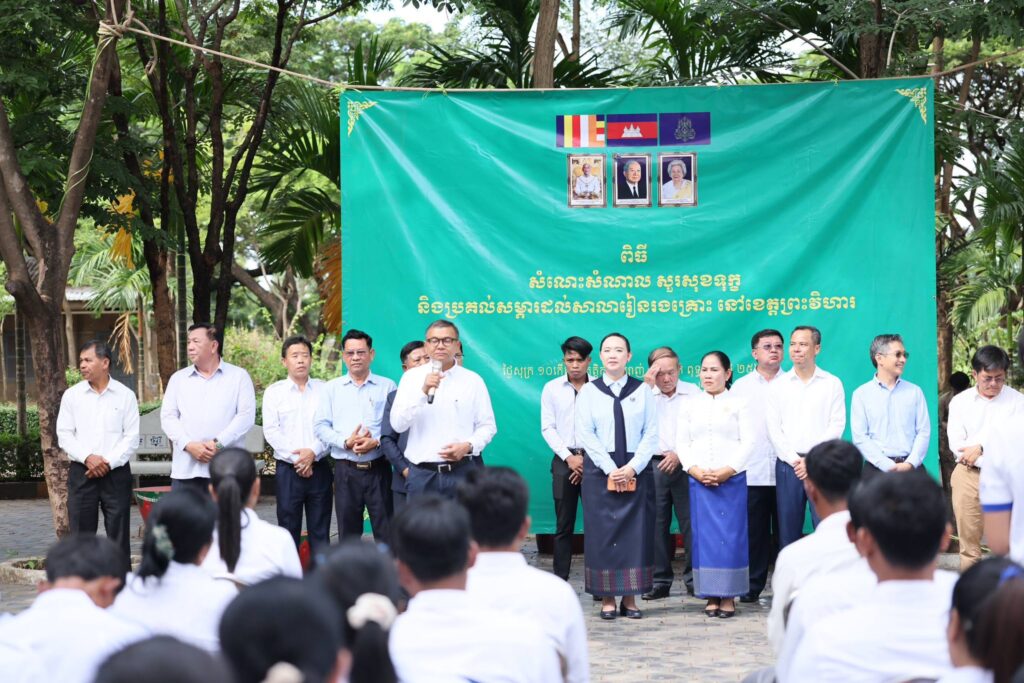 ខេត្តព្រះវិហារ ៖ ពិធីសំណេះសំណាល សួរសុខទុក្ខ និងប្រគល់សម្ភារៈសិក្សា គ្រឿងឧបភោគបរិភោគ ដល់សាលារៀនរងផលប៉ះពាល់ នៅក្នុងខេត្តព្រះវិហារ