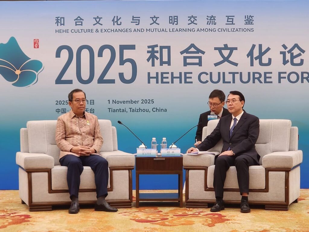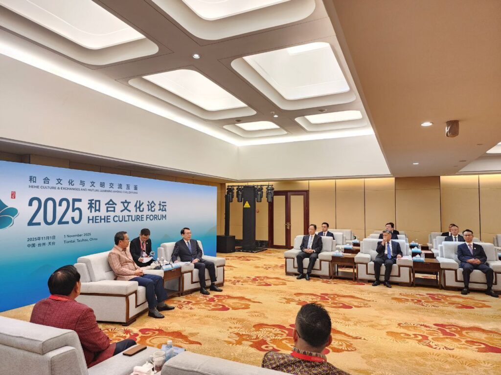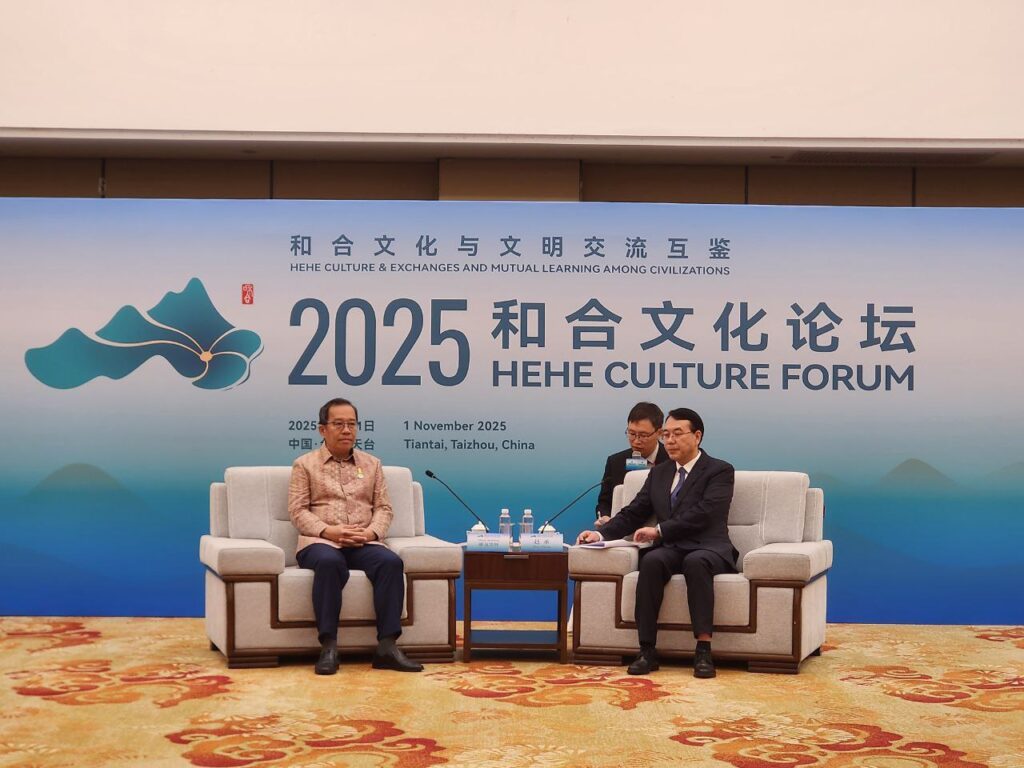 ឯកឧត្តមបណ្ឌិត ធន់ វឌ្ឍនា អនុប្រធានទី២ ព្រឹទ្ធសភា អមដំណើរដោយ ឯកឧត្តម ម៉ម ប៊ុននាង ប្រធានគណៈកម្មការទី១០ និងជាអនុប្រធានក្រុមមិត្តភាពព្រឹទ្ធសភាកម្ពុជា និងសភាប្រឹក្សានយោបាយប្រជាជនចិន ជួបសំណេះសំណាលជាមួយលោក Zhao Cheng ជាប្រធានគណៈកម្មការឃោសនាបក្សកុម្មុយនីស្តចិនប្រចាំខេត្តជឺជាំង នៅក្រុងថាយចូវ ខេត្តជឺជាំង ប្រទេសចិន នៅថ្ងៃទី១ ខែវិច្ឆិកា ឆ្នាំ២០២៥។