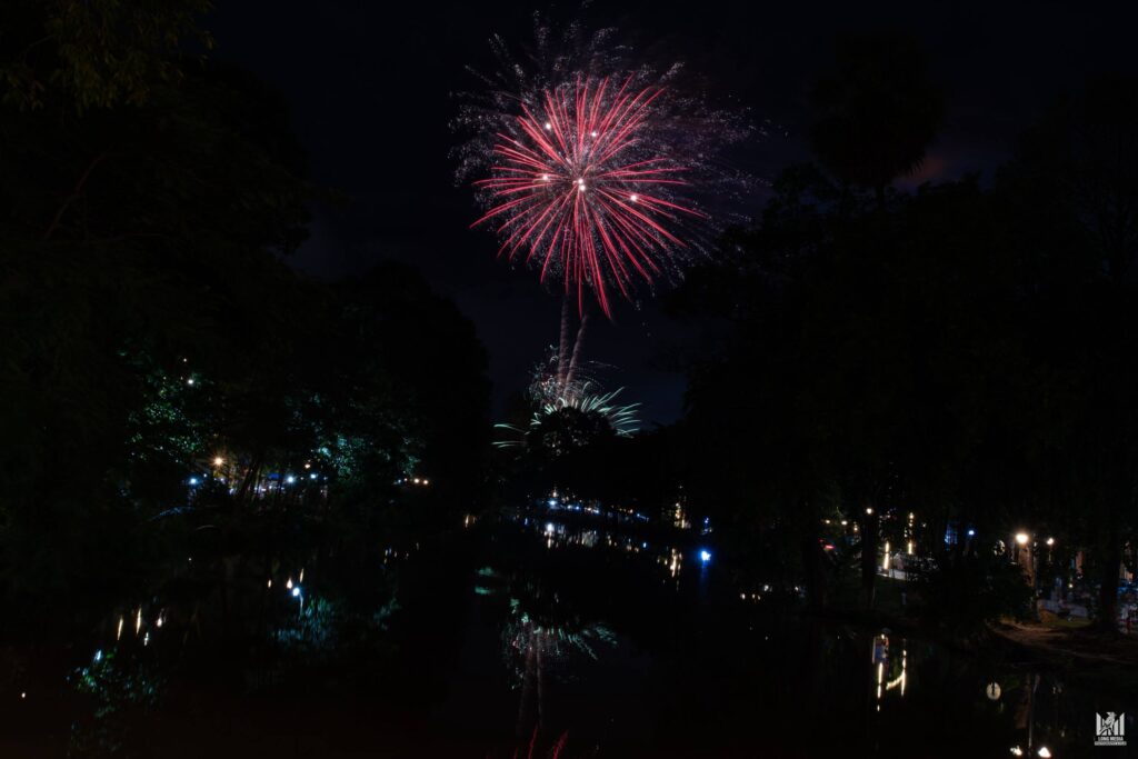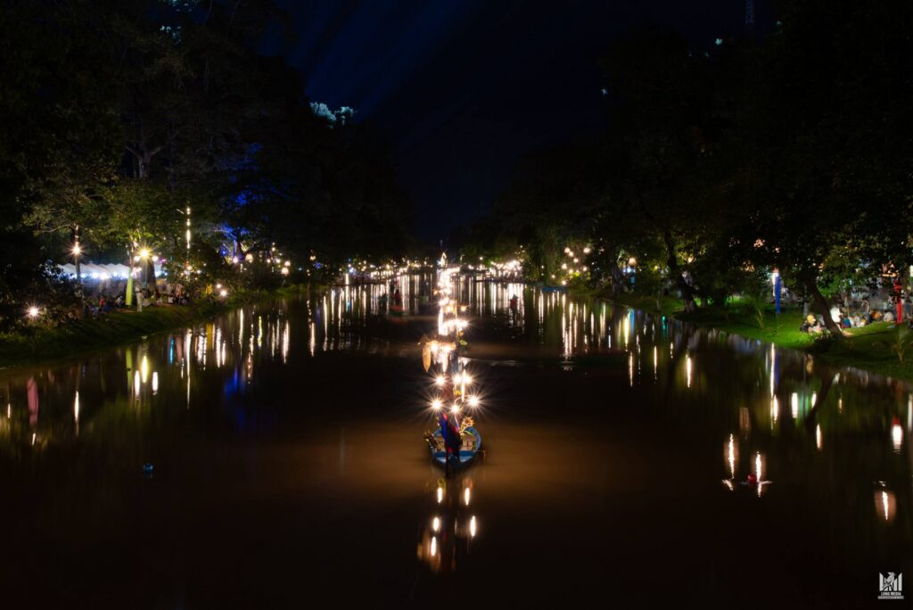 នៅពេលរាត្រីដងស្ទឹងត្រូវបានបំភ្លឺ ដោយពន្លឺប្រទីបចម្រុះពណ៌ដែលអណ្តែតតាមផ្ទៃទឹក ខណៈប្រជាពលរដ្ឋធ្វើពិធីសំពះព្រះខែ និងរីករាយនឹងការអកអំបុក តាមប្រពៃណី។
