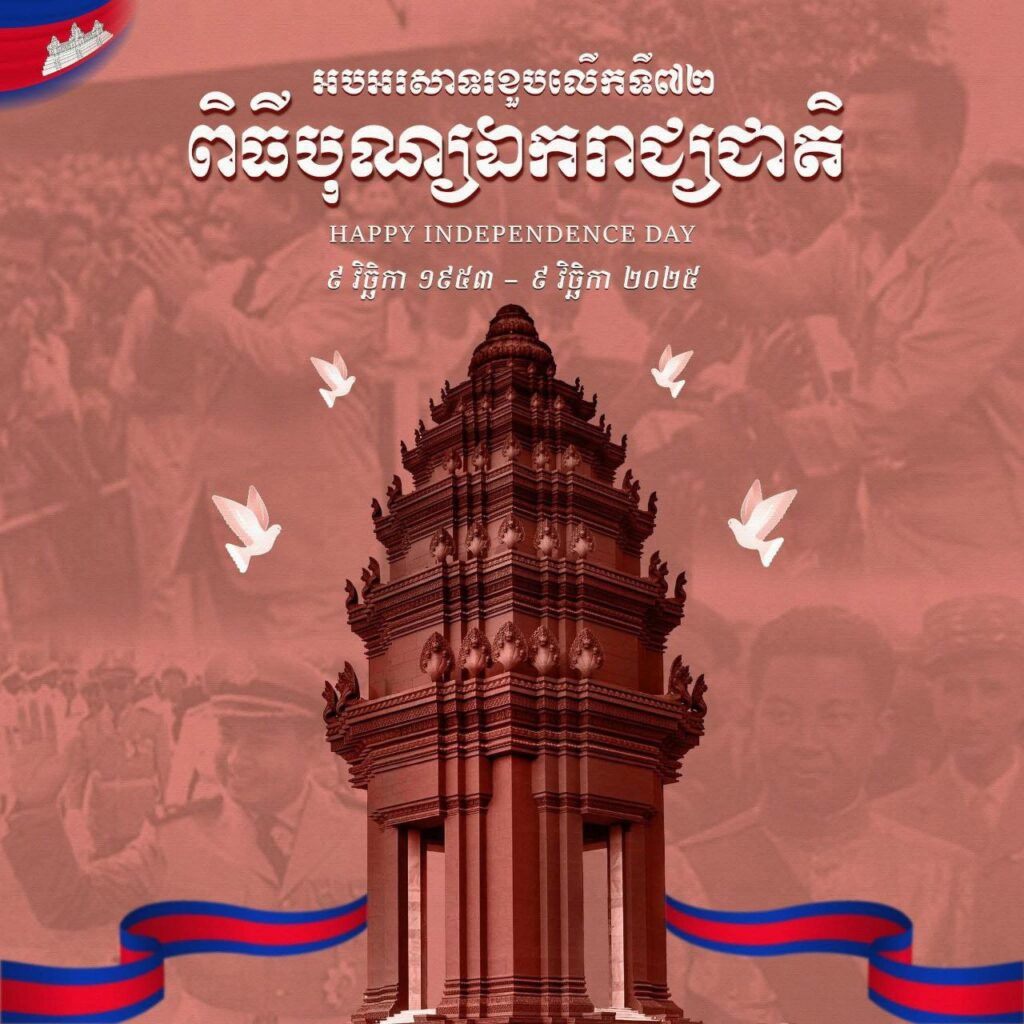 ភ្នំពេញ ៖ ក្នុងឱកាសនៃព្រះរាជពិធីអបអរសាទរ ខួបអនុស្សាវរីយ៍លើកទី ៧២ នៃទិវាបុណ្យឯករាជ្យជាតិ និងទិវាកំណើតកងយោធពលខេមរភូមិន្ទ ៩ វិច្ឆិកា ១៩៥៣ – ៩ វិច្ឆិកា ២០២៥ ព្រះករុណា ព្រះបាទសម្តេចព្រះនរោត្តម សីហមុនី ព្រះមហាក្សត្រនៃព្រះរាជាណាចក្រកម្ពជា បានមានព្រះរាជបន្ទូលថា ‘’ជនរួមជាតិជាទីស្នេហា!