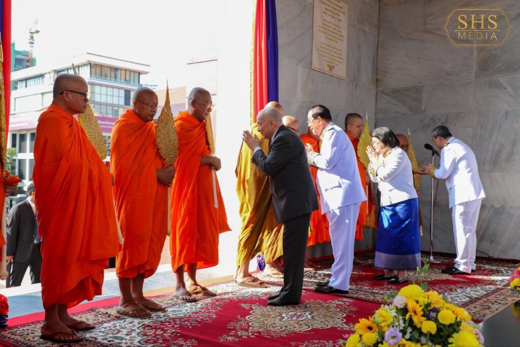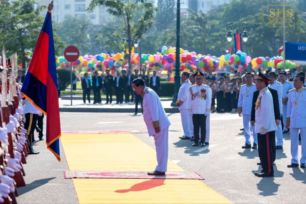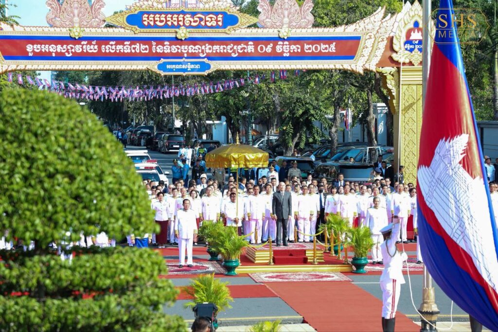 ភ្នំពេញ ៖ នៅព្រឹកថ្ងៃអាទិត្យ ៤រោច ខែកត្តិក ឆ្នាំម្សាញ់ សប្ដស័ក ព.ស. ២៥៦៩ ត្រូវនឹង ថ្ងៃទី៩ ខែវិច្ឆិកា ឆ្នាំ២០២៥ សម្ដេចអគ្គមហាសេនាបតីតេជោ ហ៊ុន សែន ប្រធានព្រឹទ្ធសភា និងជាប្រធានក្រុមឧត្តមប្រឹក្សាផ្ទាល់ព្រះមហាក្សត្រ បានអញ្ជើញដង្ហែព្រះករុណាព្រះបាទសម្ដេចព្រះបរមនាថ នរោត្តម សីហមុនី ព្រះមហាក្សត្រនៃព្រះរាជាណាចក្រកម្ពុជា សម្តេចយាងជាព្រះរាជាធិបតីភាពដ៏ខ្ពង់ខ្ពស់បំផុត ក្នុងខួបអនុស្សាវរីយ៍៧២ឆ្នាំ នៃទិវាបុណ្យឯករាជ្យជាតិ៩ វិច្ឆិកា នៅវិមានឯករាជ្យ រាជធានីភ្នំពេញ។