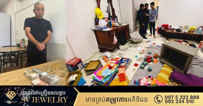 ភ្នំពេញ៖ ជនជាតិចិនម្នាក់ត្រូវបានកម្លាំងនគរបាលខណ្ឌពោធិ៍សែនជ័យសហការជាមួយនគរបាលការិយាល័យព្រហ្ម ទណ្ឌនៃស្នងការនគរបាលរាជធានីភ្នំពេញស្រាវជ្រាវឃាត់ខ្លួនបន្ទាប់ពីធ្វើសកម្មភាពគាស់ផ្ទះ លោកវេជ្ជបណ្ឌិតគាស់បំបែកទូរដែកយកប្រាក់និងគ្រឿងអលង្កាសរុបជាទឹកប្រាក់ចំនួន១១២៤៥០ដុល្លារ (មួយសែន មួយម៉ឺនពីរ ពាន់បួនរយហាសិបដុល្លារ)ហើយគេចខ្លួនបានតែ២ថ្ងៃ។ ជនសង្ស័យរូបនេះត្រូវបានអធិការដ្ឋាននគរបាលខណ្ឌពោធិ៍សែនជ័យកសាងសំណុំរឿងបញ្ជូនទៅ តុលាការអនុវត្តន៍តាមនីតិវិធី។