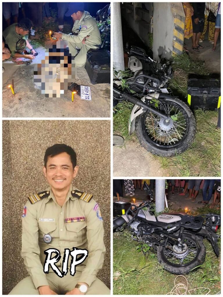 ភ្នំពេញ ៖ មន្រ្តីនគរបាលនៅនាយកដ្ឋានអត្តសញ្ញាណកម្មម្នាក់ បានទទួលមរណភាព ក្រោយបើកម៉ូតូបុកបង្កាន់ដៃស្ពានព្រែកប្រា បណ្តាលឲ្យធ្លាក់ទៅក្រោមស្ពាន នៅយប់ថ្ងៃទី៩ ខែវិច្ឆិកា ឆ្នាំ២០២៥ស្ថិតនៅតាមបណ្តោយផ្លូវ៣៦៩ សង្កាត់ព្រែកប្រា ខណ្ឌច្បារអំពៅ រាជធានីភ្នំពេញ ។