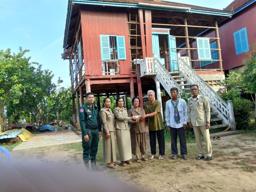 ១-លោក ថាយ អេង អាយុ៧៧ឆ្នាំ និងប្រពន្ធឈ្មោះ ដោក សៅលី អាយុ៧០ឆ្នាំ នៅភូមិទី៤ ត្រូវរុះរេីផ្ទះគេចចេញពីទីតាំងបាក់ច្រាំងទន្លេ ឧបត្ថម្ភថវិកា ១,០០០,០០០រៀល ។ដោយឡែកសម្ដេចក៏បានជួយឧបត្ថម្ភប្រជាពលរដ្ឋដែលមានជំងឺទើបចេញពីមន្ទីរពេទ្យចំនួនបីនាក់ទៀតដែលត្រឡប់មកផ្ទះវិញក្នុងនោះមាន÷