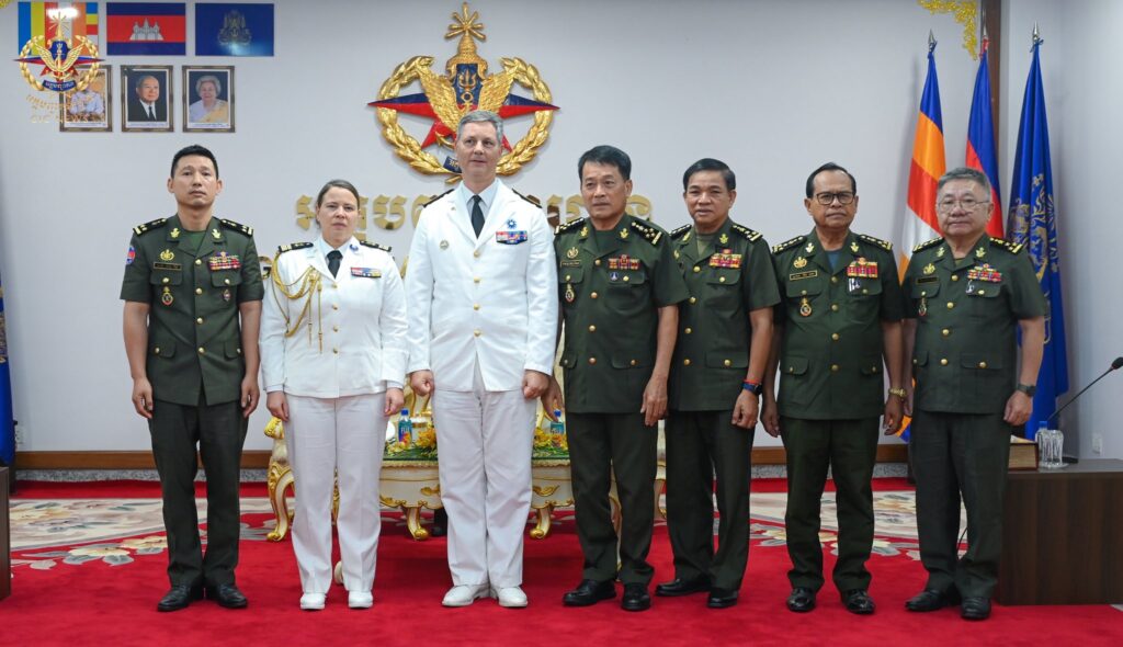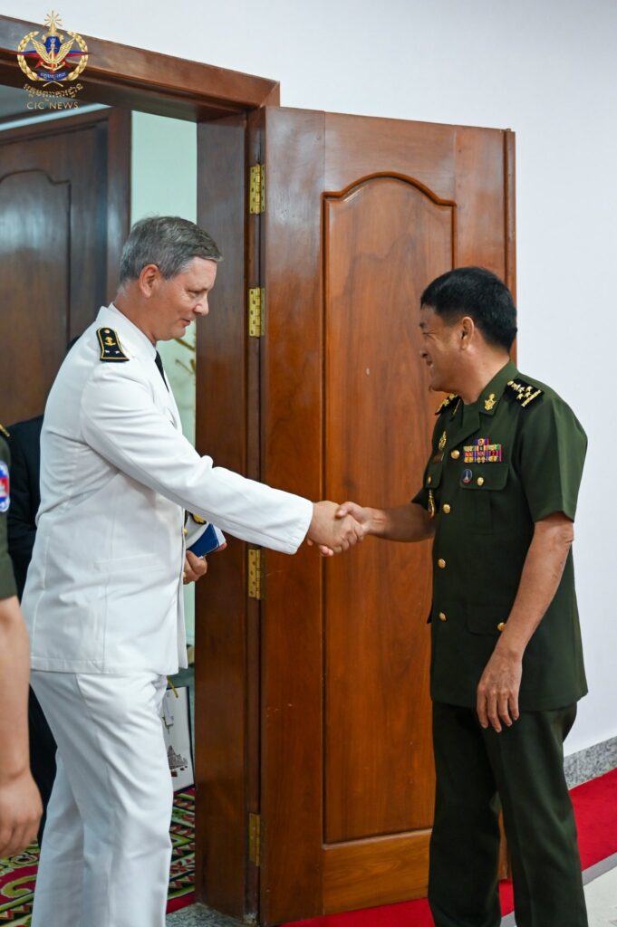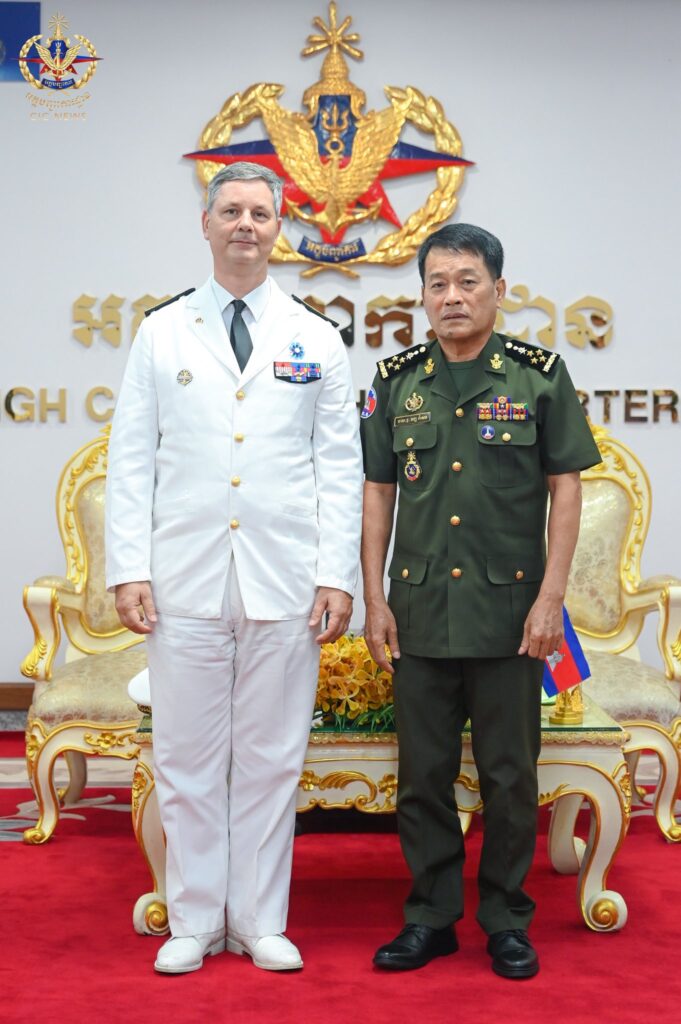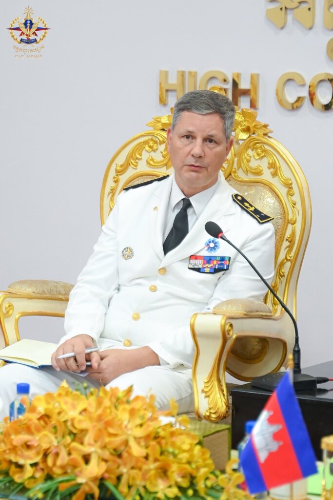 ភ្នំពេញ៖ នៅព្រឹកថ្ងៃទី១១ ខែតុលា ឆ្នាំ២០២៥ ឯកឧត្តម នាយឧត្តមសេនីយ៍ វង្ស ពិសេន អគ្គមេបញ្ជាការនៃកងយោធពលខេមរភូមិន្ទ បានអនុញ្ញាតឱ្យលោកឧត្តមនាវីទោ ហ្សាក់ រីខែយែរ ( Jacques RIVIERE )ទទួលបន្ទុករបេសកកម្មអមបញ្ជាការដ្ឋានប្រចាំតំបន់អាស៊ីប៉ាស៊ីហ្វិក និងកងកម្លាំងប្រដាប់អាវុធនៅតំបន់ប៉ូលីនេស៊ីបារាំង ចូលជួបពិភាក្សាការងារ នៅអគ្គបញ្ជាការដ្ឋាន។